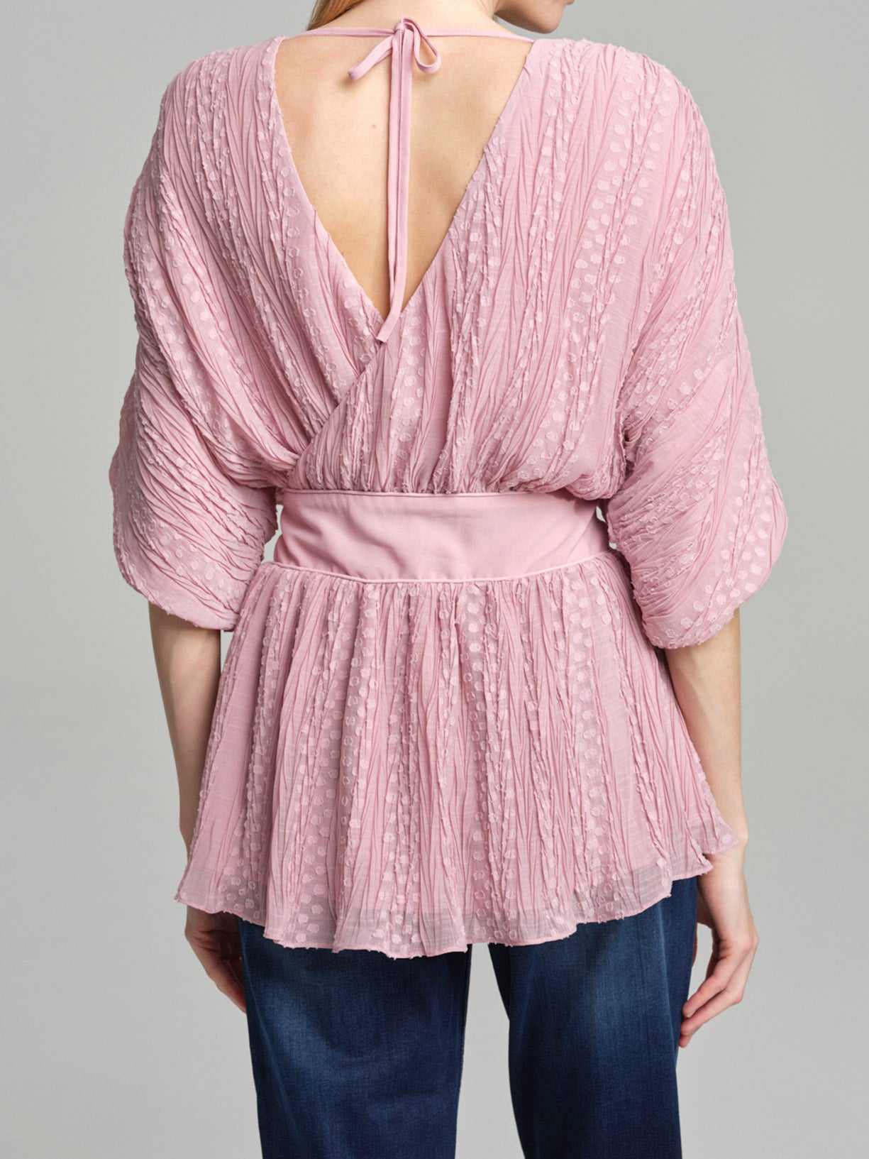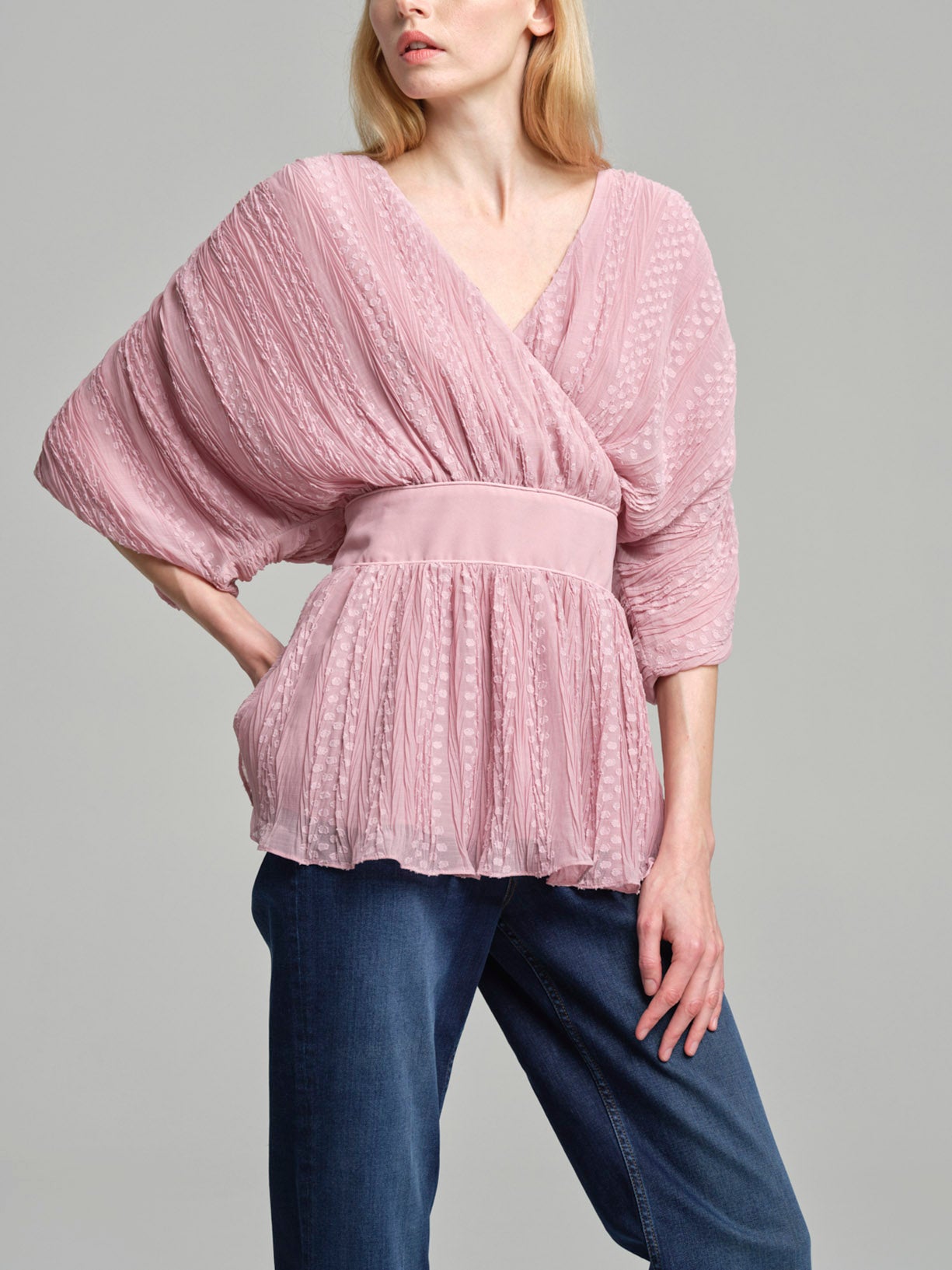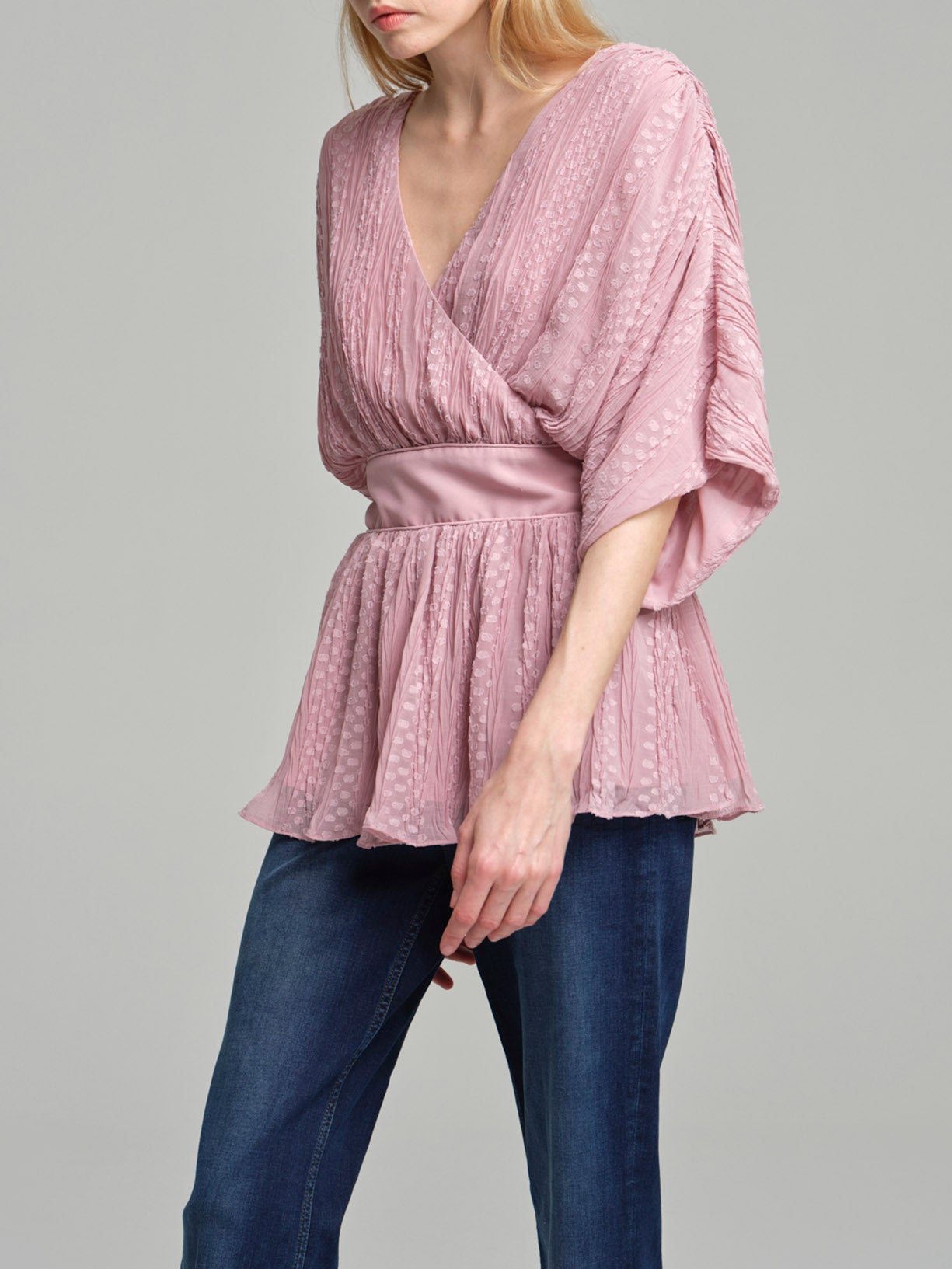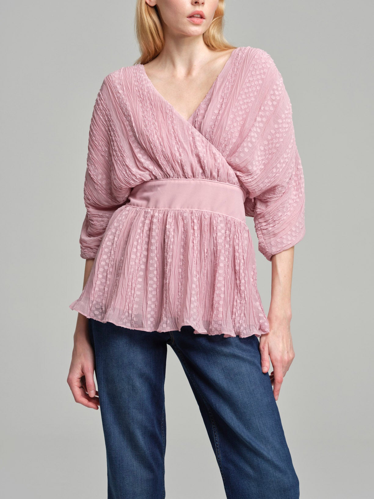 Blusa em forma de leque fit & flare em tecido plissado