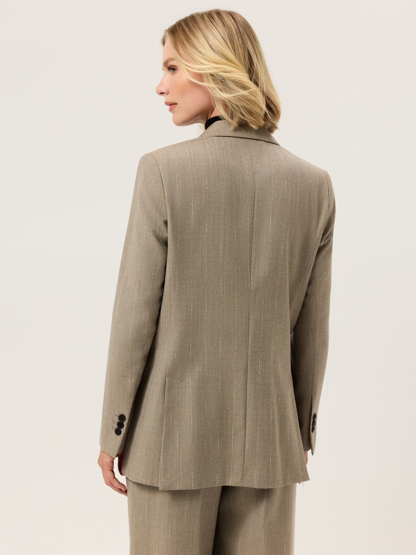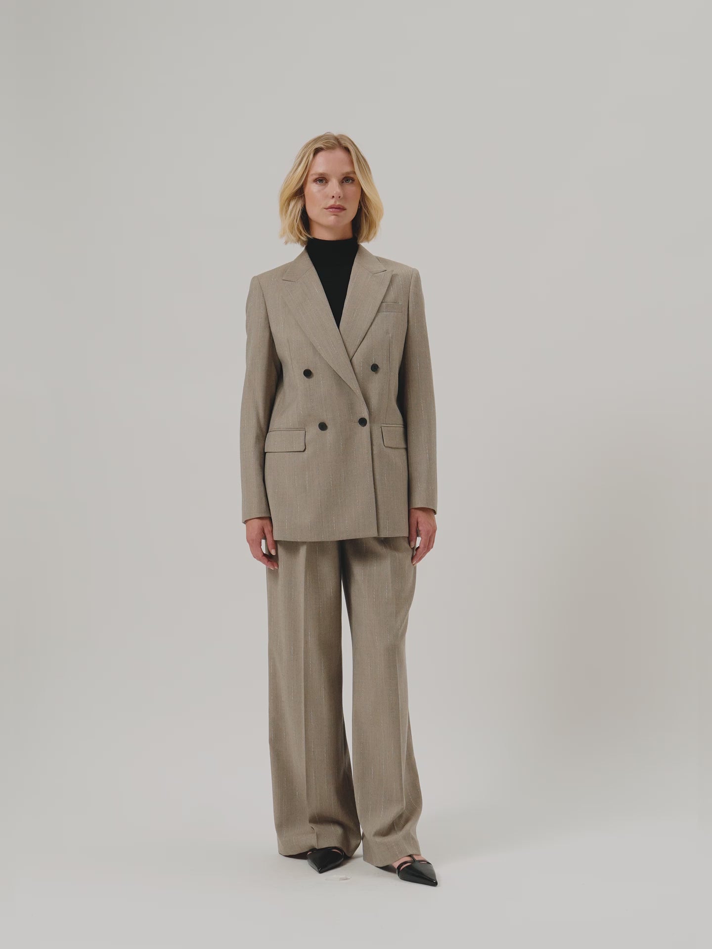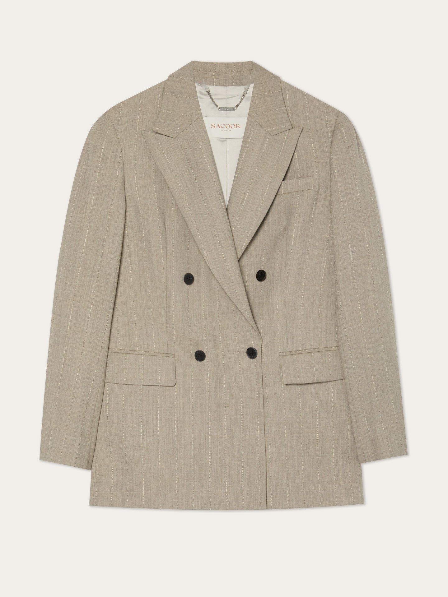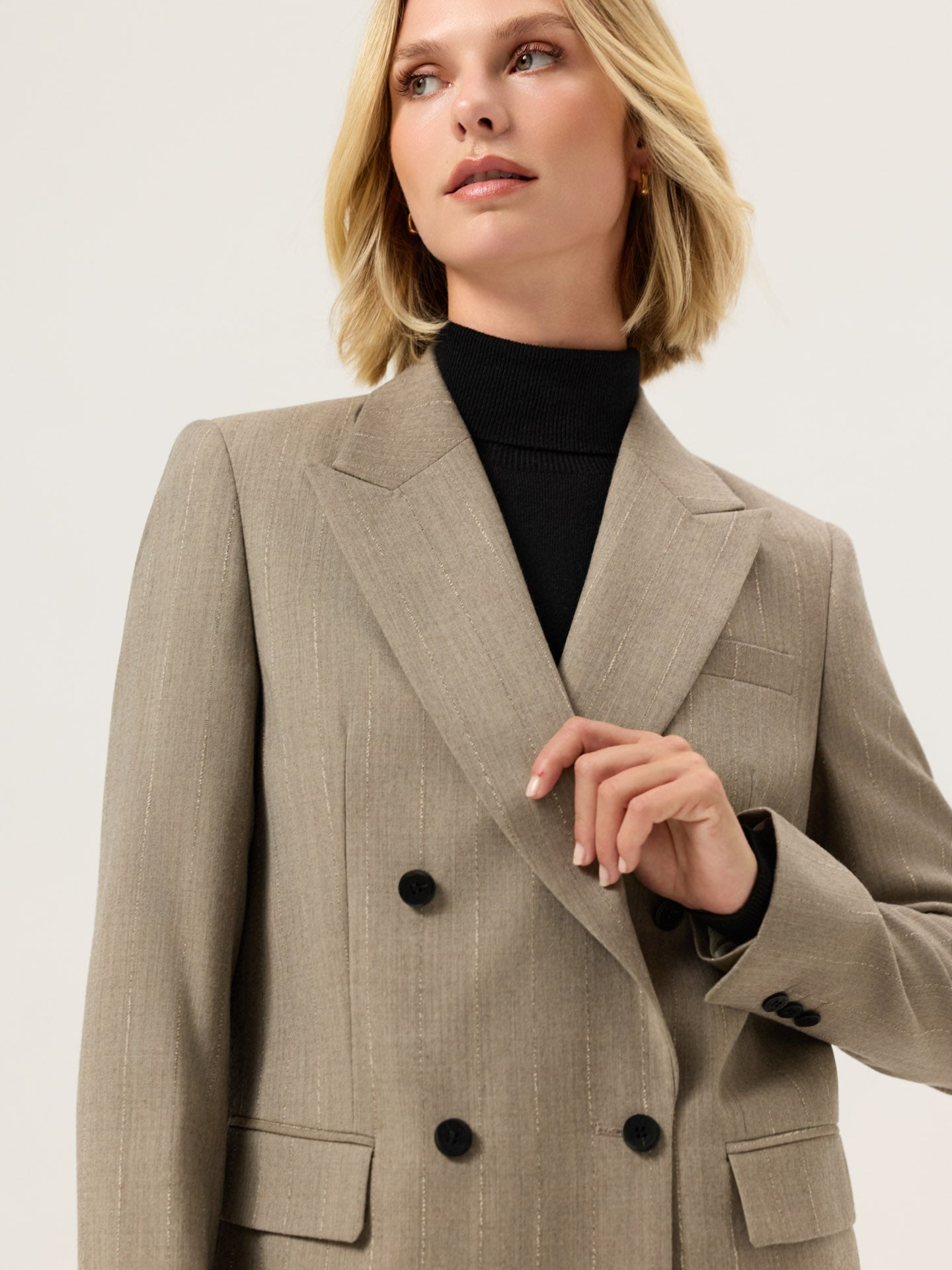 Blazer de Trespasse em Tecido Riscas de Mistura de Lã