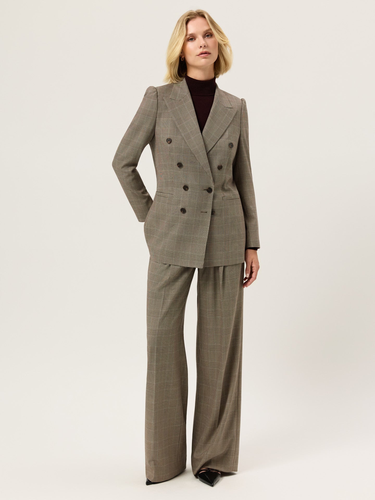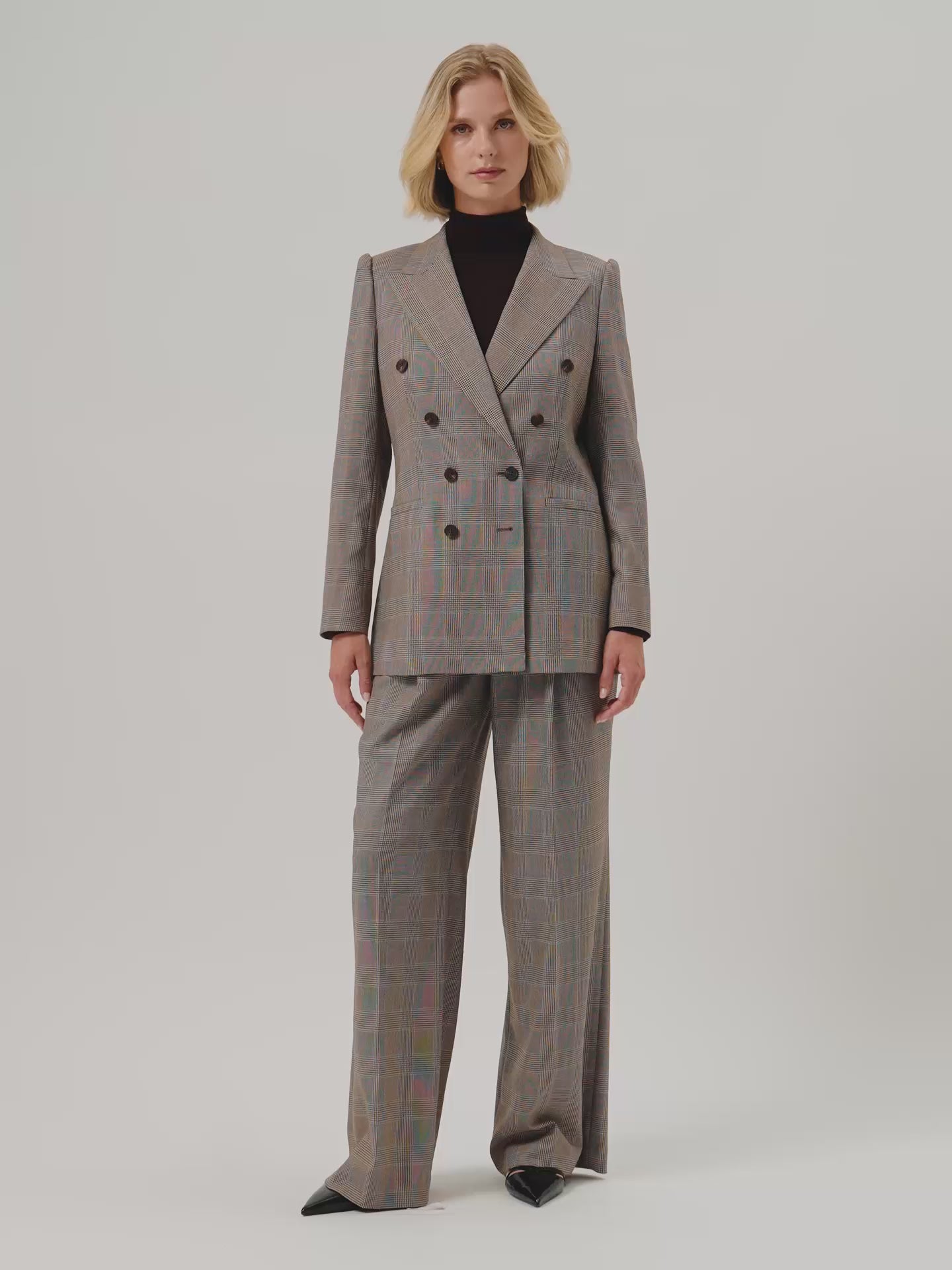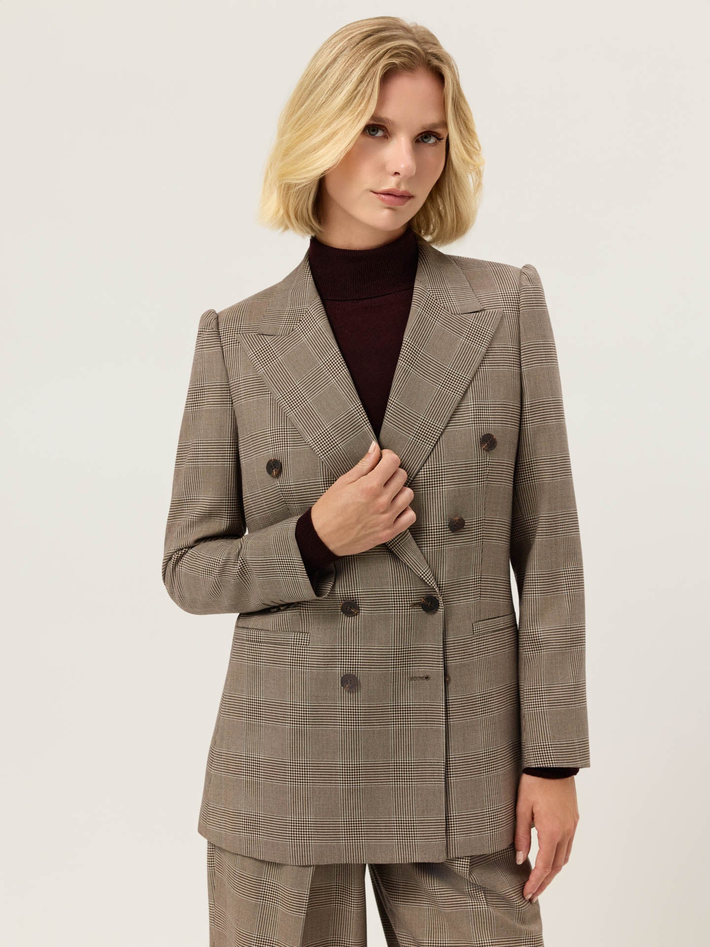 Blazer de Trespasse em Tecido Xadrez com Mistura de Viscose