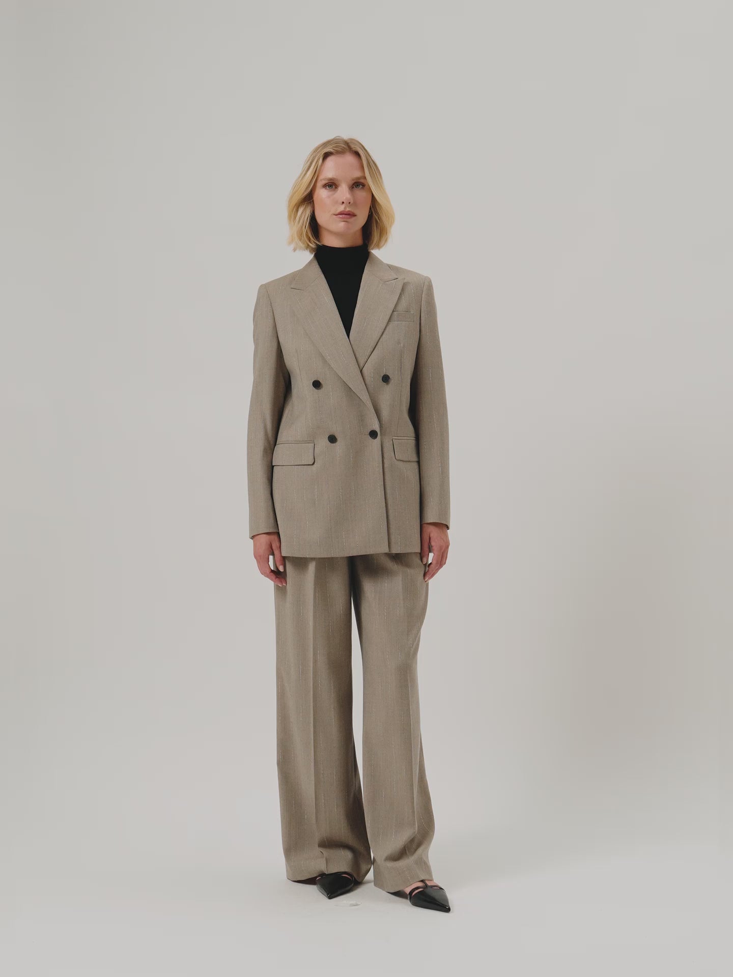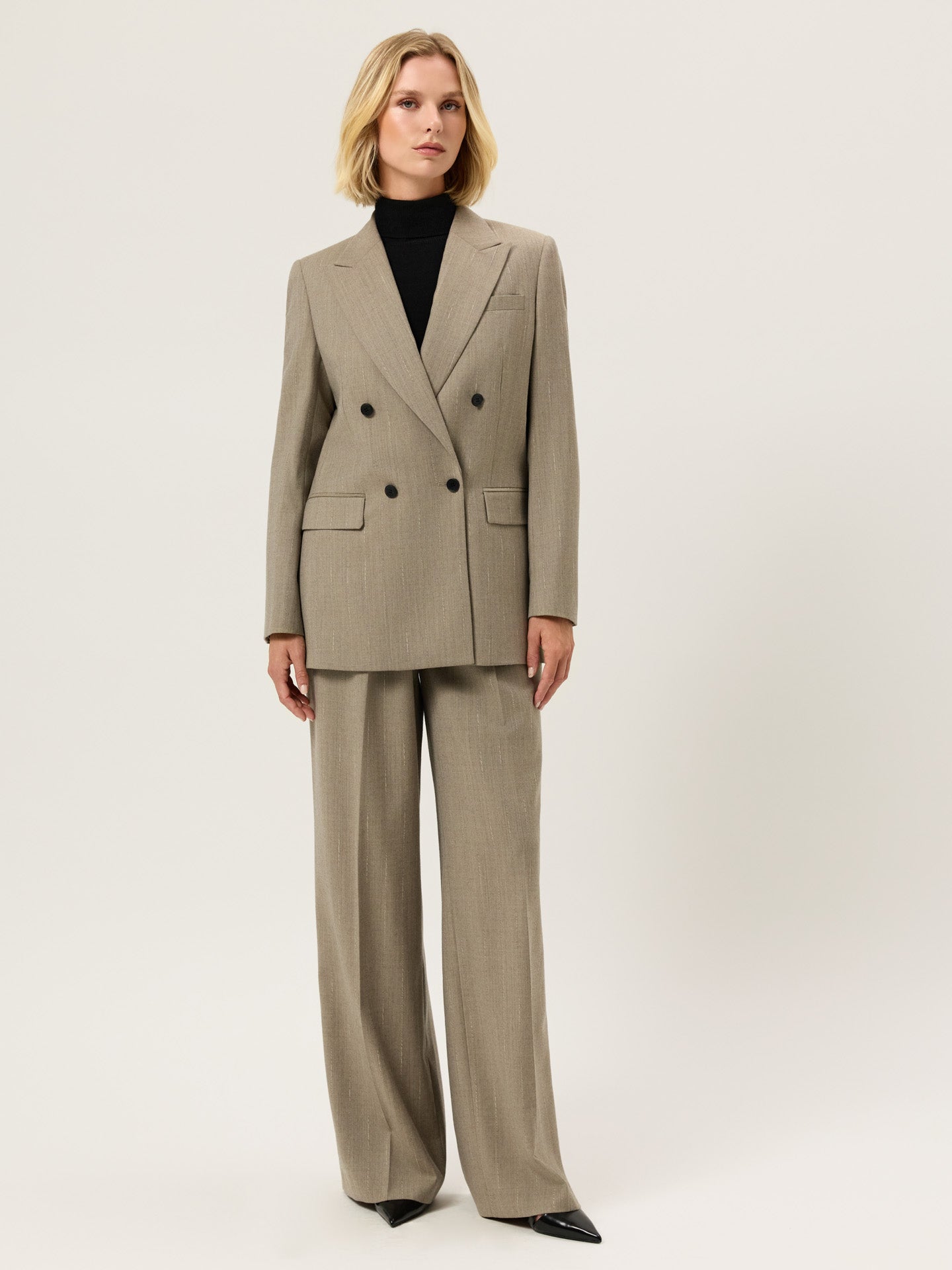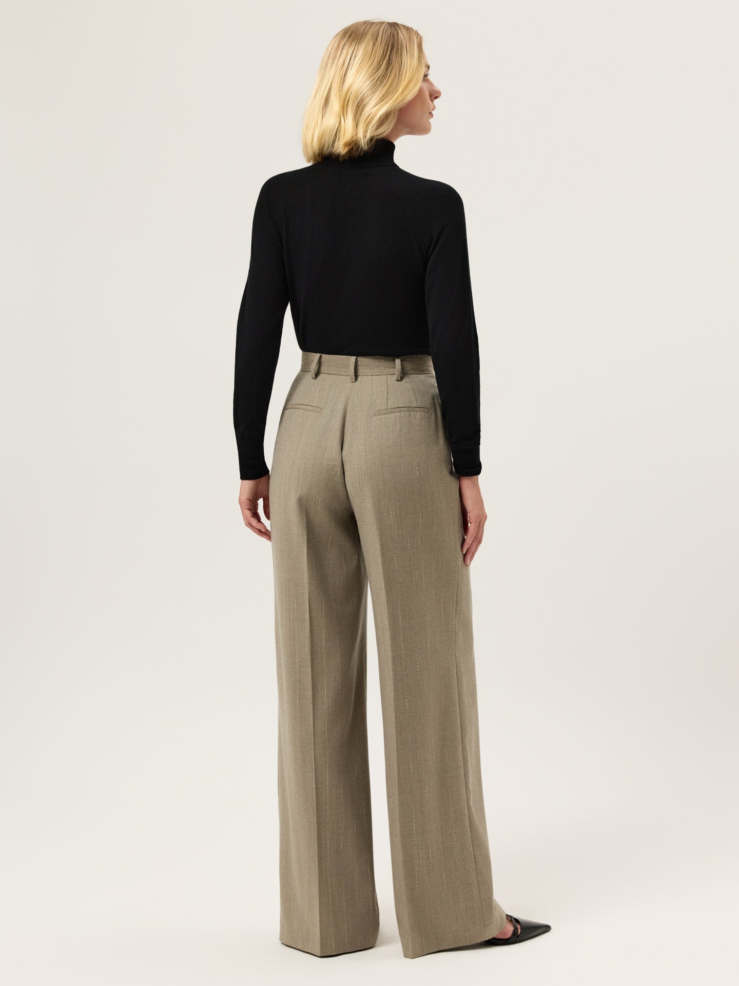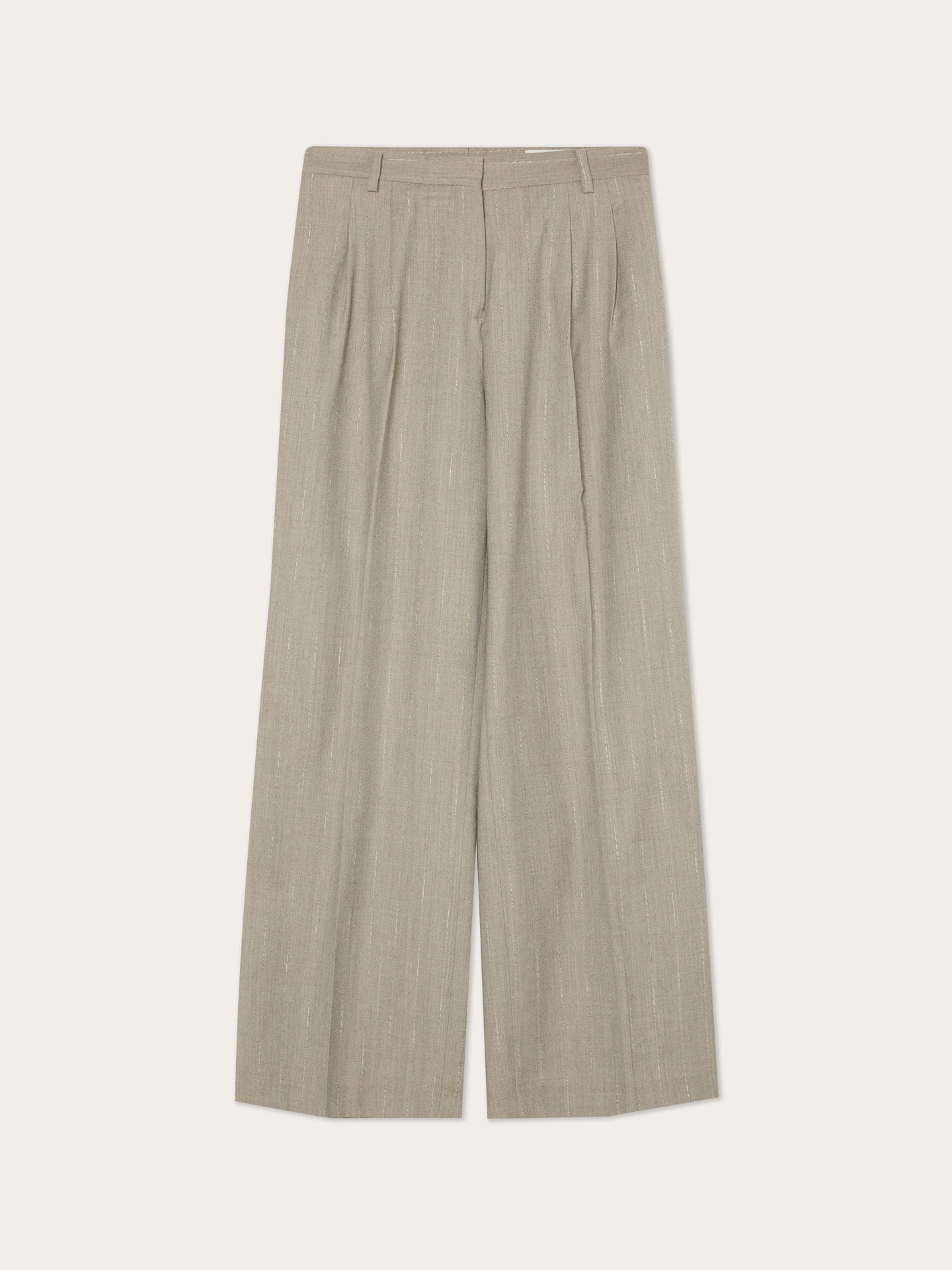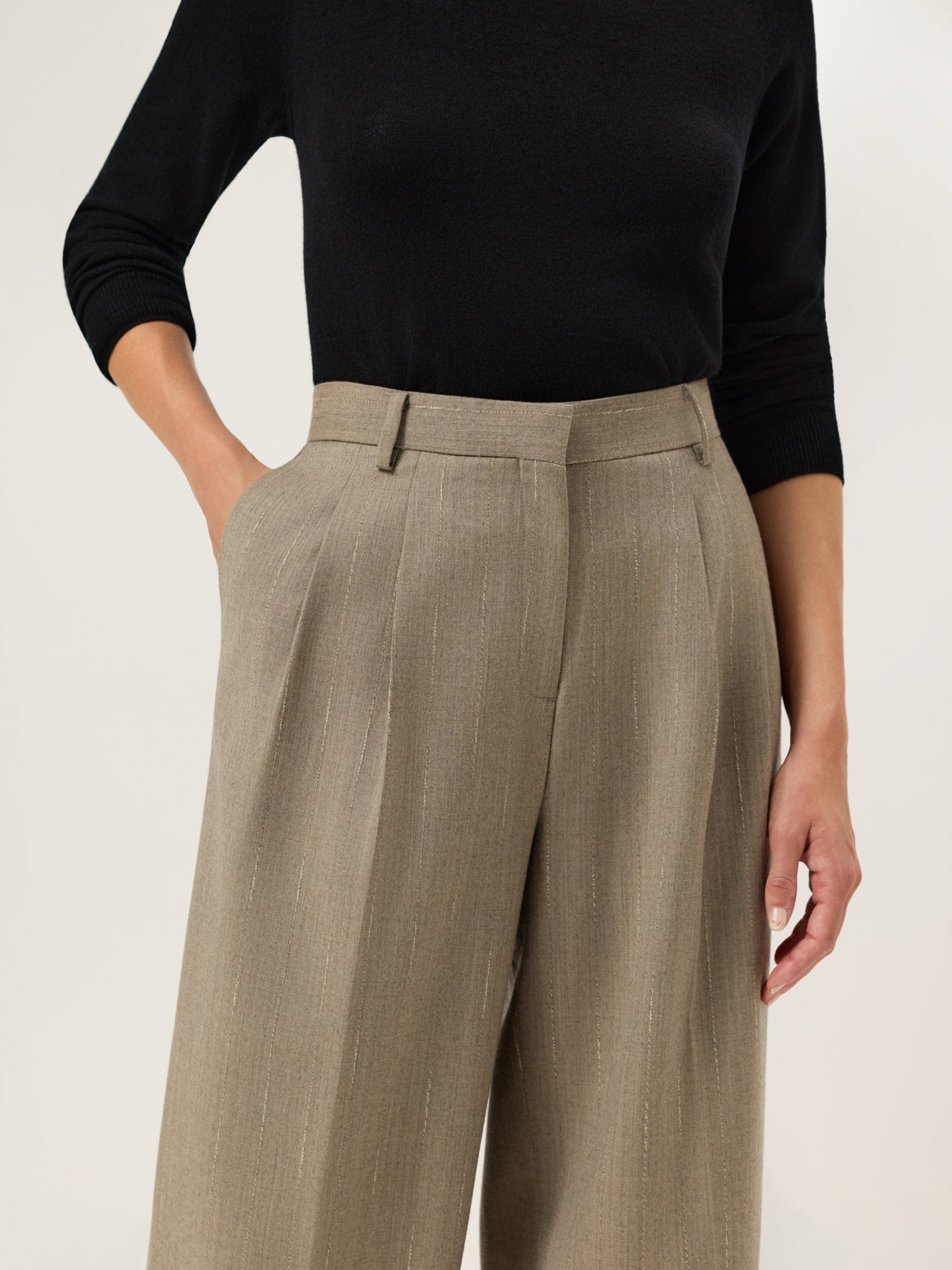 Calças com Pregas Loose Fit em Tecido Riscas com Mistura de Lã