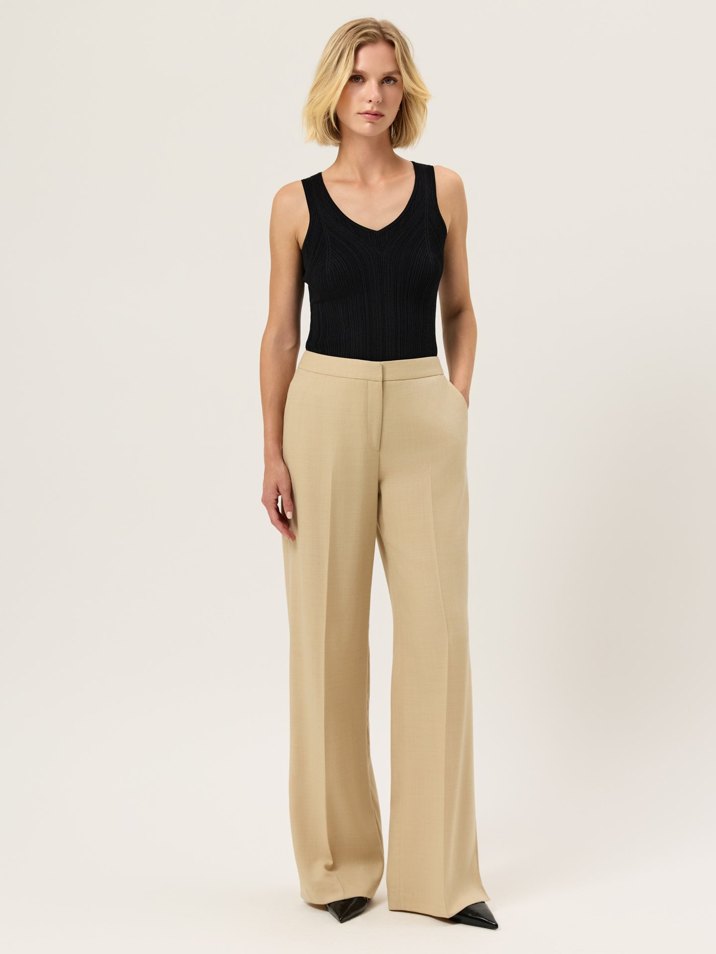 Calças Loose Fit em Tecido Espinha com Mistura de Lã