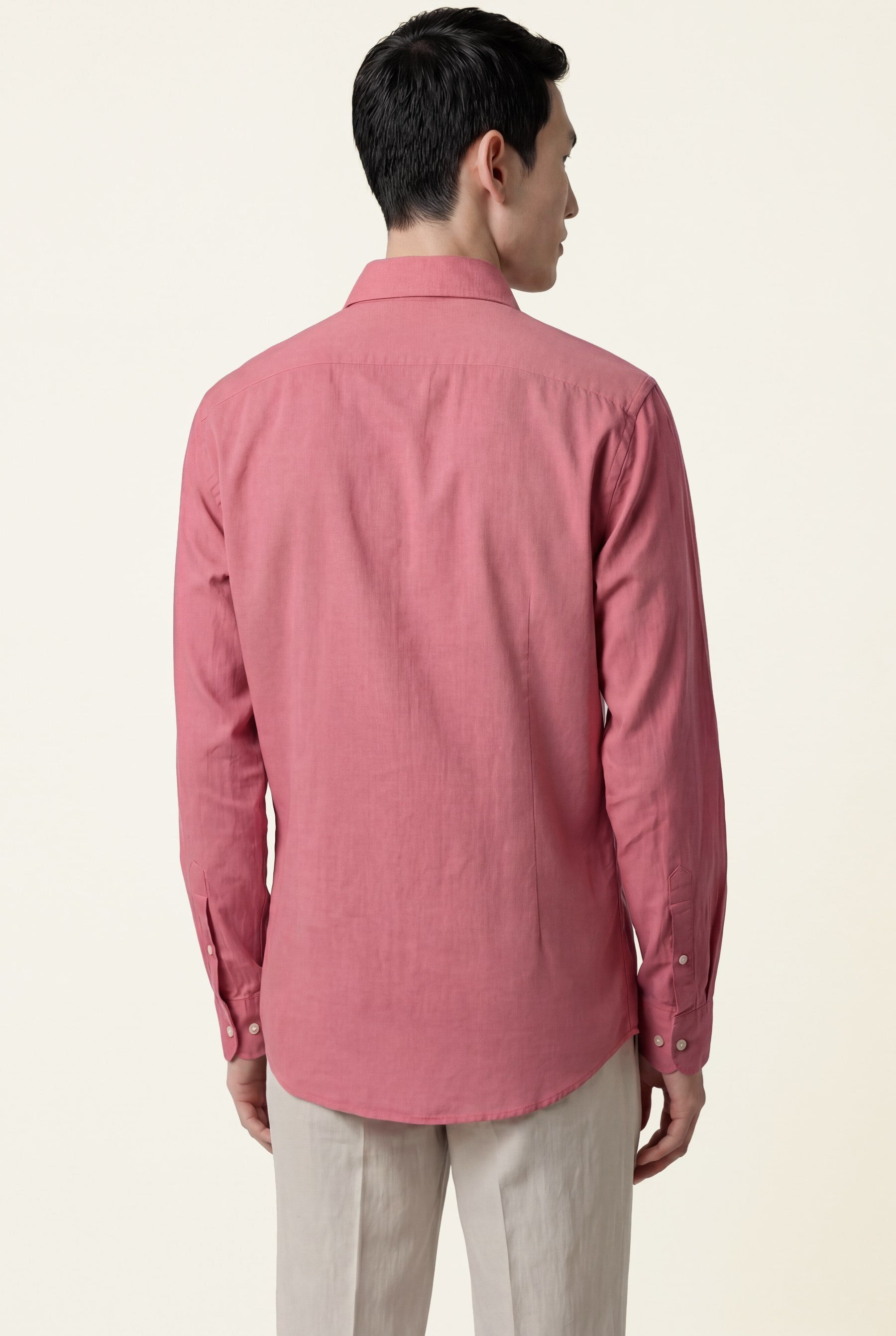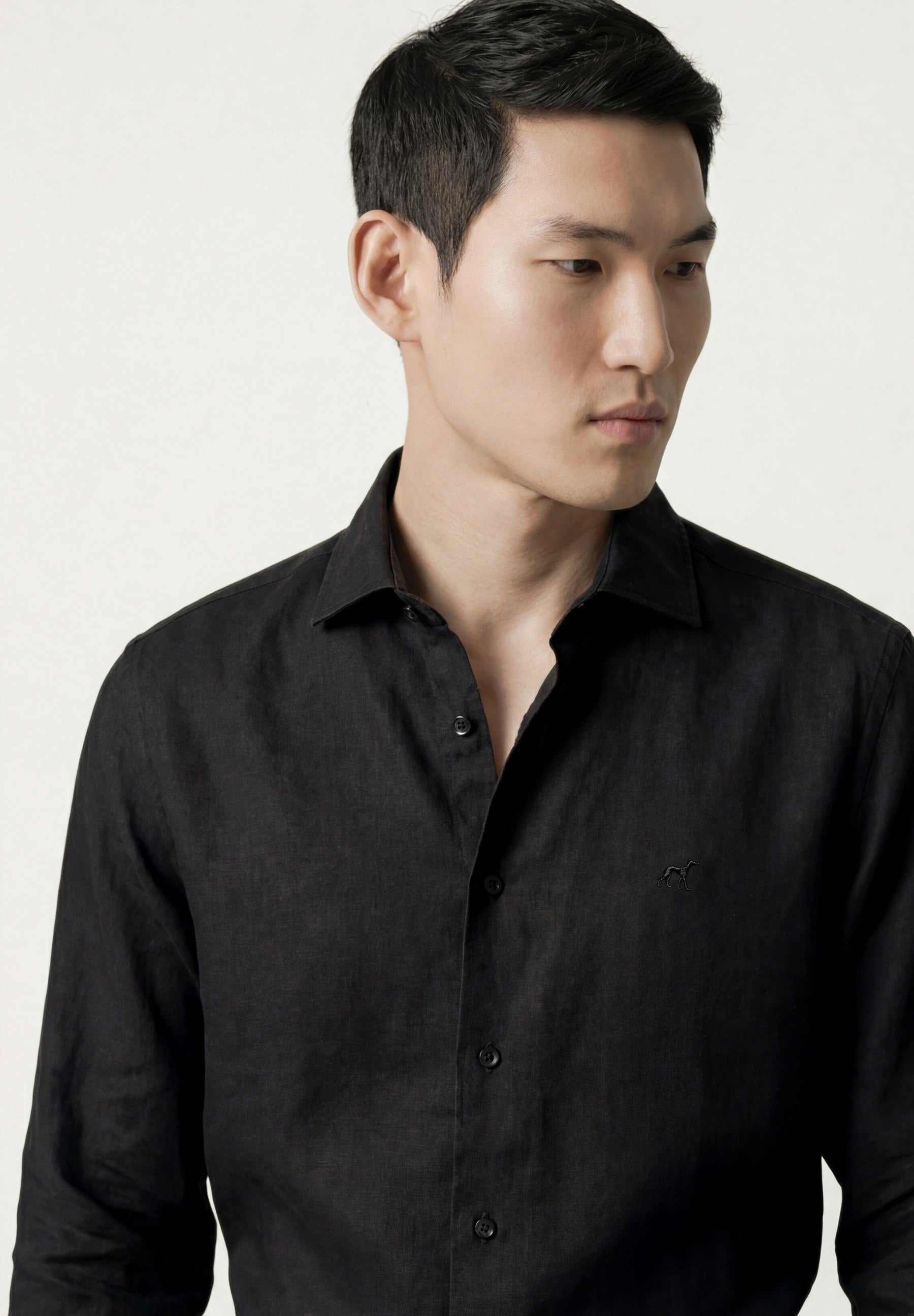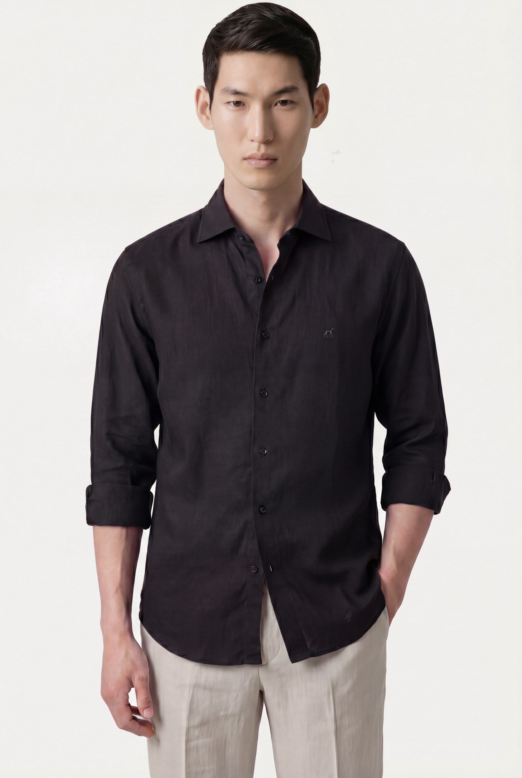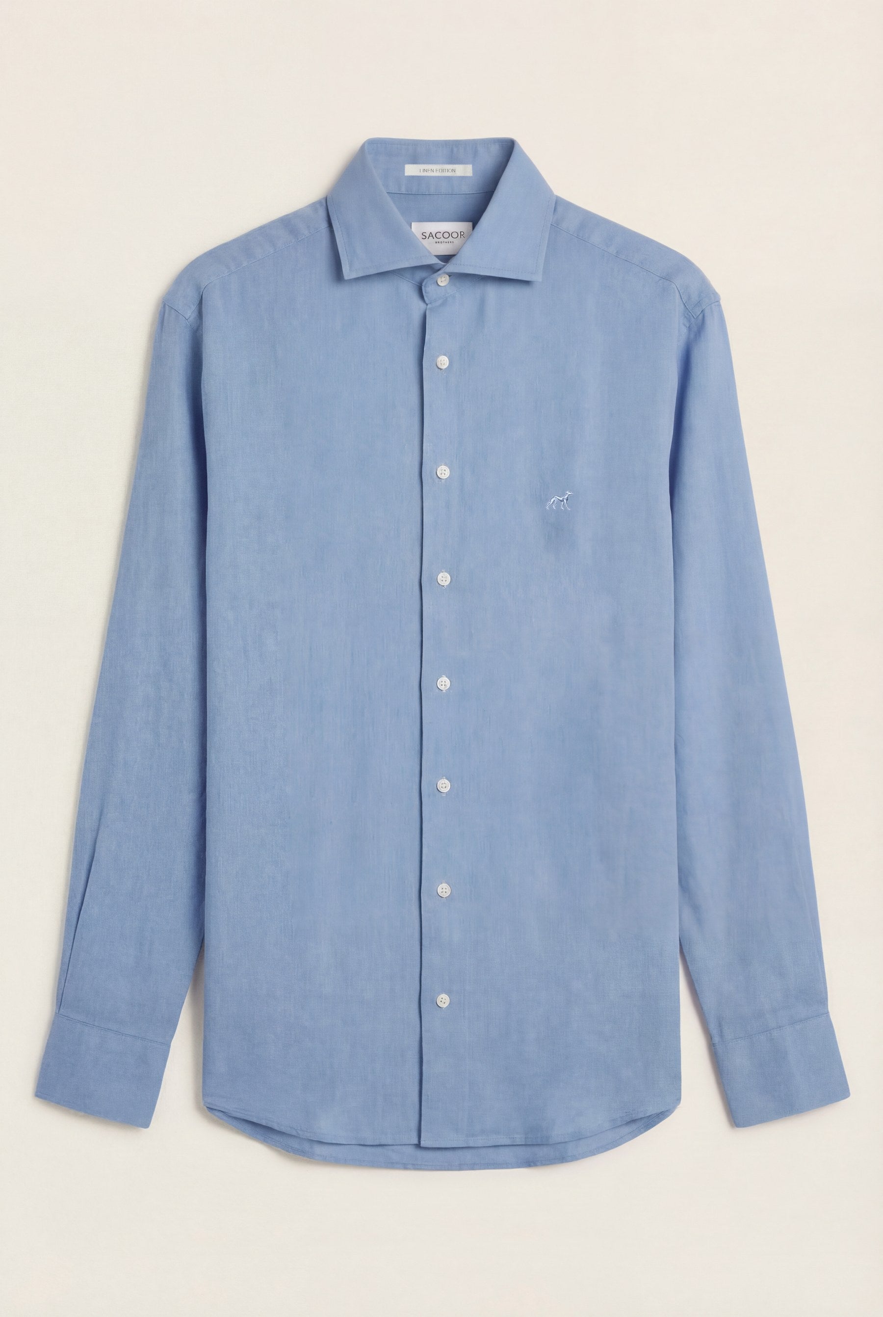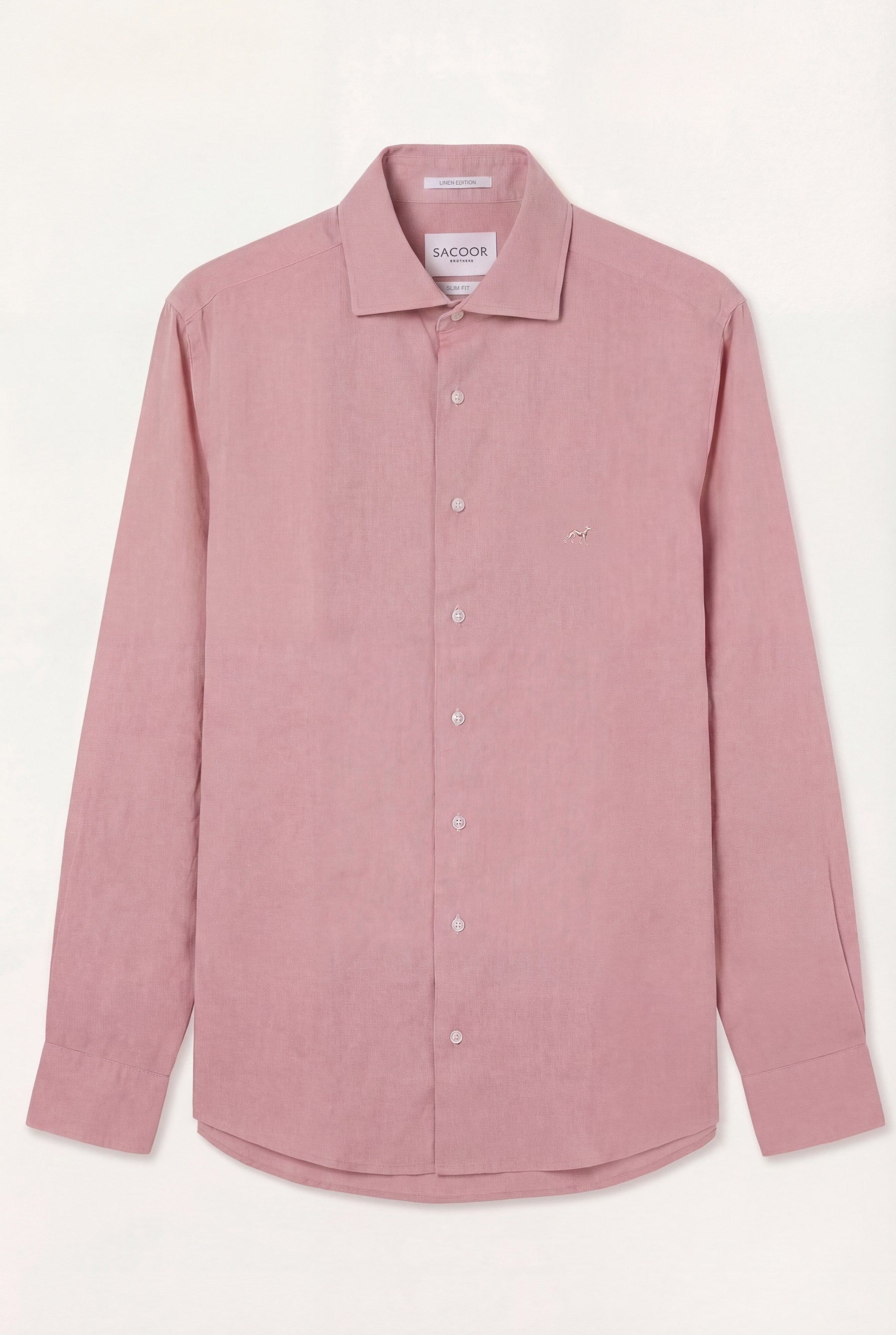 Camisa em algodão e linho, garment dyed, colarinho aberto, slim fit