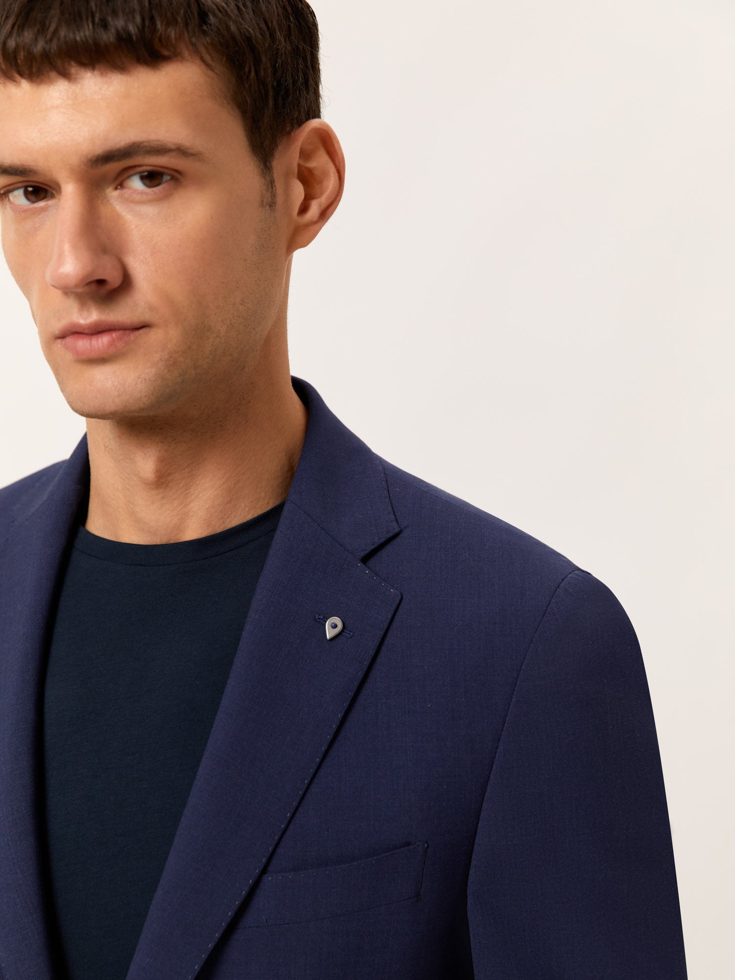 Uma peça distinta que conjuga elegância intemporal com versatilidade contemporânea. Cuidadosamente confecionado em lã de alta performance com elastano, este fato de duas peças oferece um conforto excecional, ajuste perfeito e desempenho superior. Os fios premium garantem maior elasticidade, respirabilidade e resistência a vincos, tornando-o ideal para o dia a dia exigente. Com um corte slim que proporciona uma silhueta descontraída e elegante, adapta-se a diferentes tipos de corpo. O blazer de dois botões apresenta lapelas em bico, bolsos com pala, punhos com quatro botões, duas aberturas traseiras, bolsos interiores com fecho de correr e um bolso com proteção EMW. As calças incluem fecho de correr com botão e colchete oculto, dois bolsos laterais com bolso para moedas, dois bolsos traseiros com debrum e presilhas para cinto. Disponível em medidas de corte regular, do tamanho 56 ao 62. Ideal para ambientes profissionais ou ocasiões em que a apresentação é essencial. Um fato para todas as ocasiões — uma escolha sofisticada que eleva qualquer guarda-roupa.