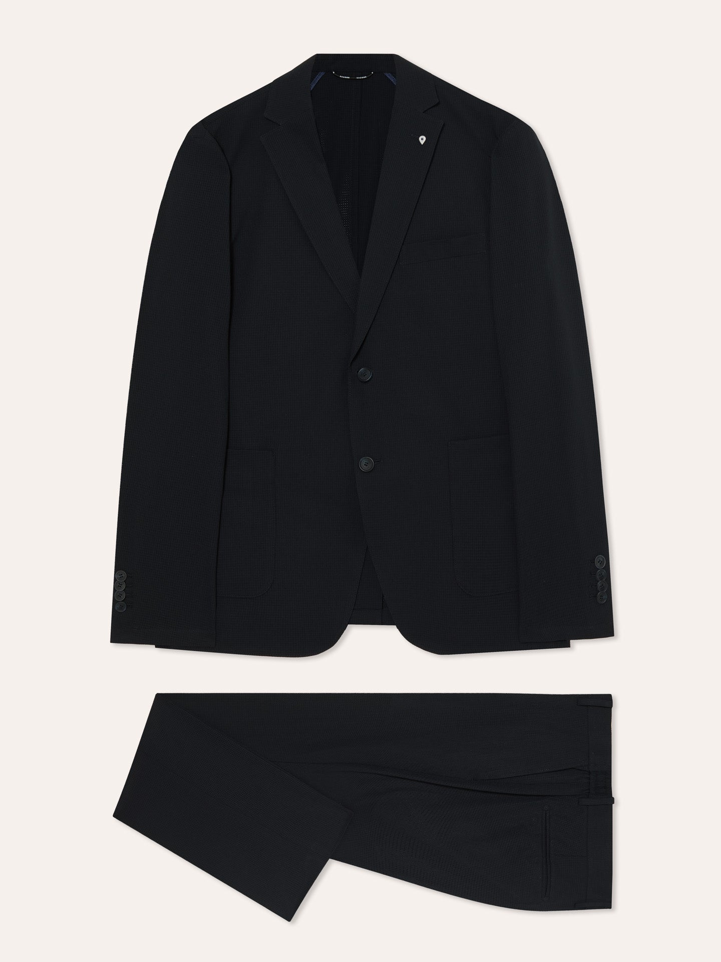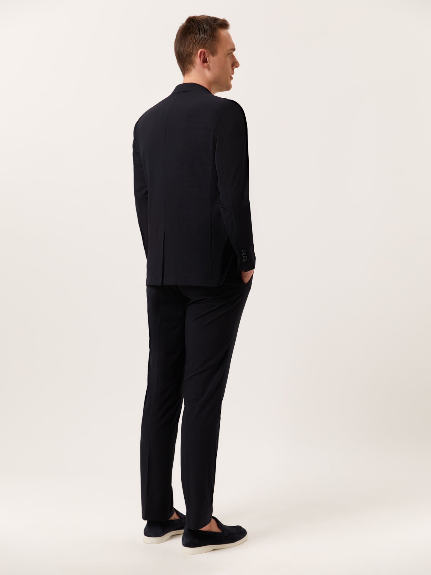 Fato K.Airmesh da linha Travel, onde a alfaiataria moderna se encontra com o desempenho de topo. Feito num tecido leve e perfurado, este fato de duas peças slim fit foi concebido para pessoas que valorizam o estilo e a funcionalidade no ambiente agitado da cidade. Totalmente sem forro, oferece uma frescura e conforto superiores, sendo a escolha ideal para os dias agitados. O blazer apresenta dois botões na frente, lapelas de entalhe e práticos bolsos de chapa, complementados com manga de quatro botões e duas aberturas nas costas para maior mobilidade. Os bolsos na frente e interiores foram cuidadosamente concebidos e incluem compartimentos especiais com fecho, acrescentando opções de arrumação funcionais sem pôr em causa o estilo. As calças foram desenhadas para o máximo conforto, com um inovador cordão na cintura e molas na frente para um ajuste moderno e descontraído. O elástico nas laterais garante flexibilidade, enquanto um bolso lateral com fecho oferece um armazenamento seguro para os artigos essenciais. Dois bolsos laterais, um discreto bolso para moedas, dois bolsos traseiros embutidos e presilhas para o cinto completam as calças, tornando-as versáteis e práticas para o estilo de vida dinâmico da cidade. Este fato é a combinação perfeita entre alfaiataria contemporânea e o design de alto desempenho. Seja para enfrentar um dia de trabalho agitado ou para se deslocar pela cidade, o fato K. Airmesh oferece um conforto incomparável, frescura e um visual elegante e moderno, ideal para o profissional urbano ativo. Todos os fatos têm medidas regulares do tamanho 56 ao 62.