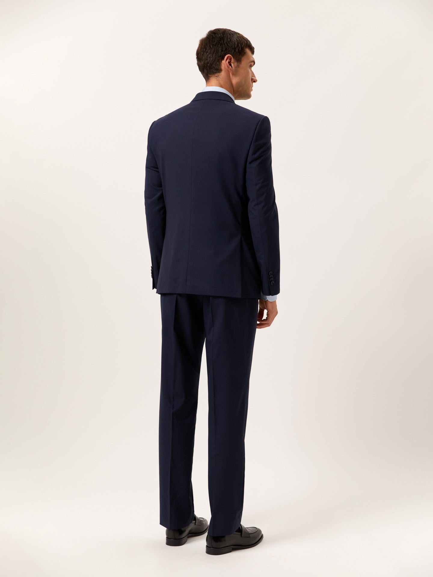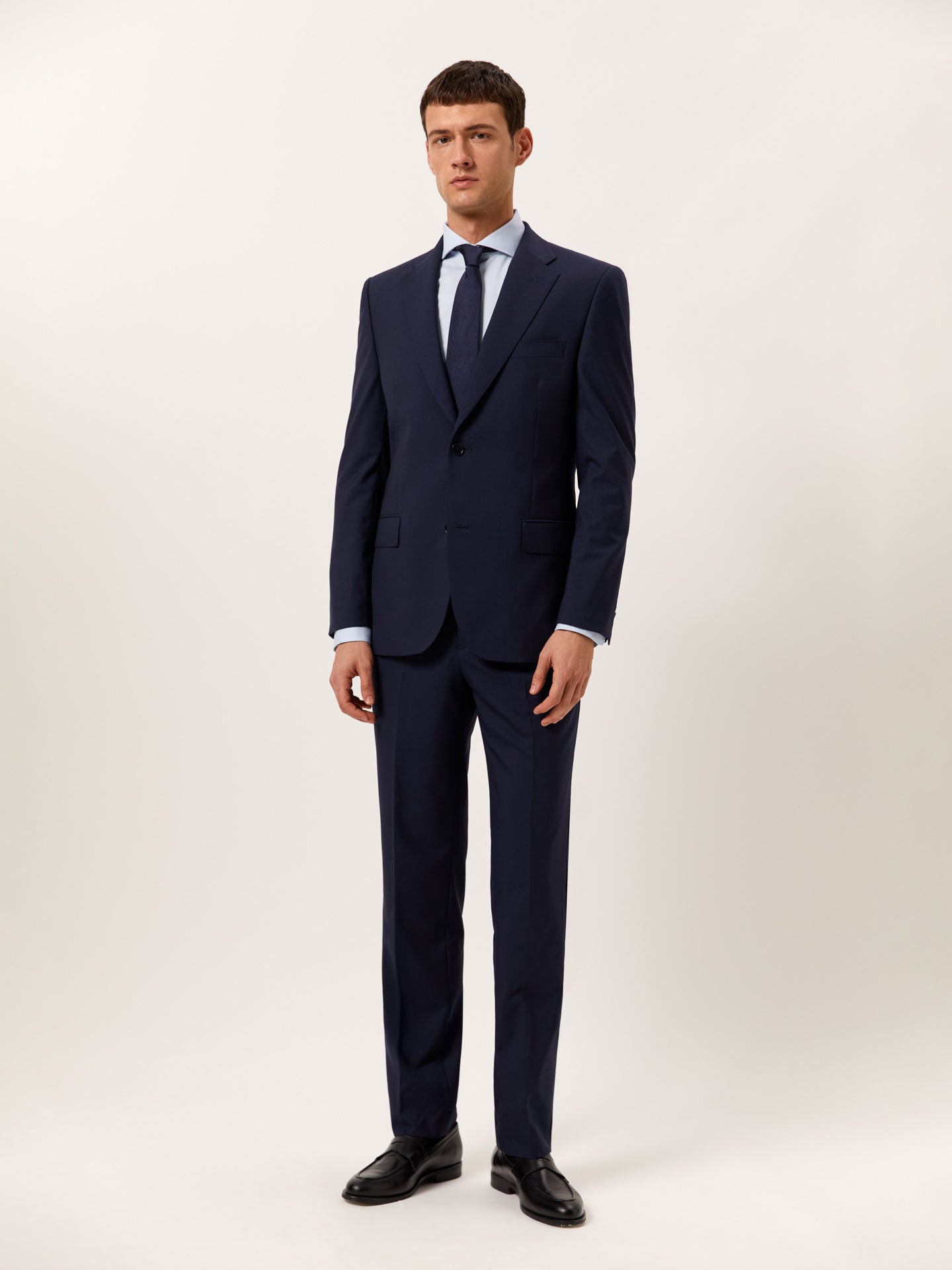 Uma peça distinta que conjuga elegância intemporal com versatilidade contemporânea. Cuidadosamente confecionado em lã 100% pura, este fato de duas peças da nossa linha Formal apresenta um corte regular que proporciona uma silhueta descontraída, ideal para todos os tipos de corpo. O blazer, totalmente forrado, inclui fecho de dois botões, lapelas em bico, bolsos com pala, punhos com quatro botões e duas aberturas traseiras, garantindo maior conforto e liberdade de movimentos. As calças complementam o conjunto com fecho de correr, botão e colchete oculto no cós, dois bolsos laterais com bolso para moedas, dois bolsos traseiros com debrum e presilhas para cinto. Ideal para ambientes profissionais ou ocasiões em que a apresentação é essencial. Um fato para todas as ocasiões — uma escolha sofisticada que eleva qualquer guarda-roupa.
