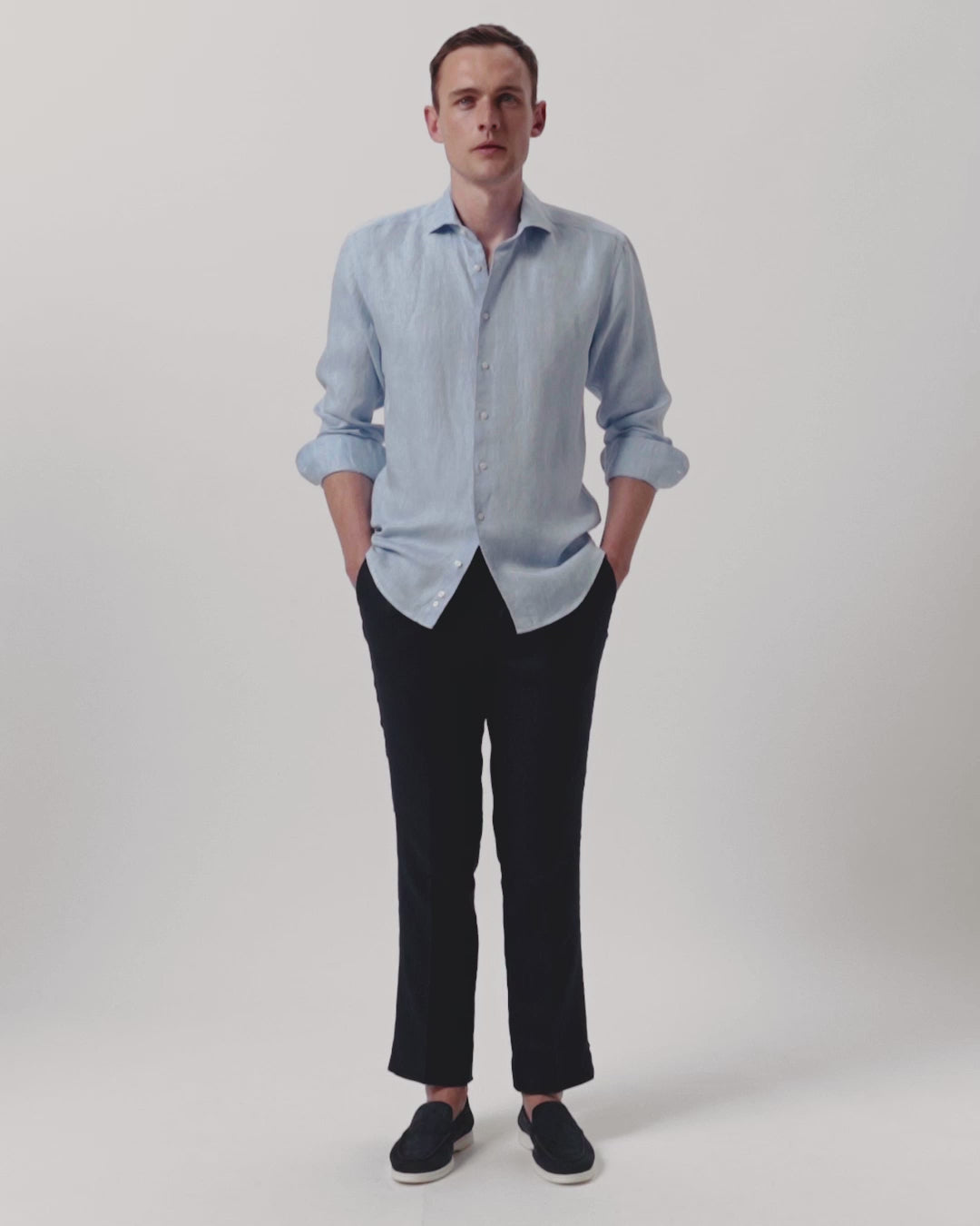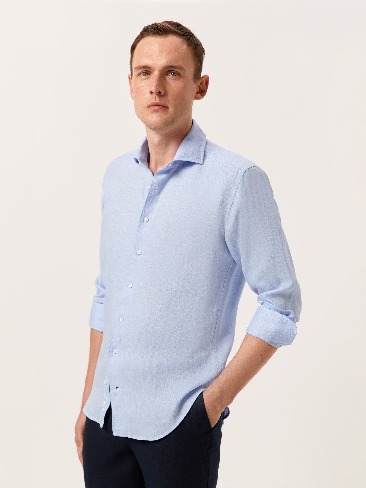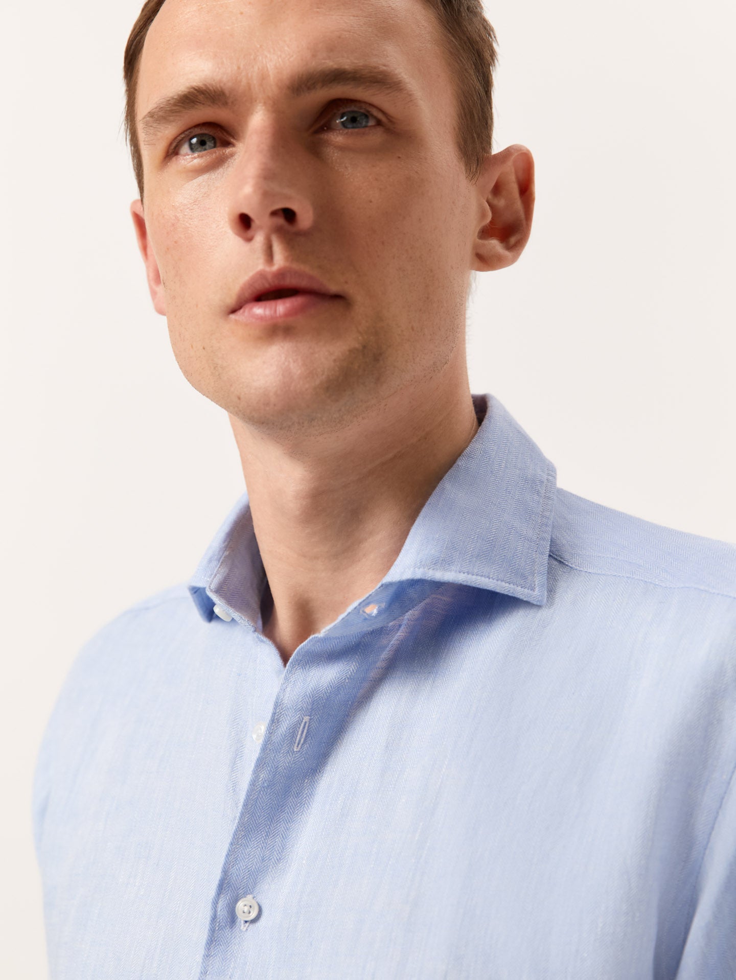 Slim Fit Herringbone Linen Shirt with Newport Collar
