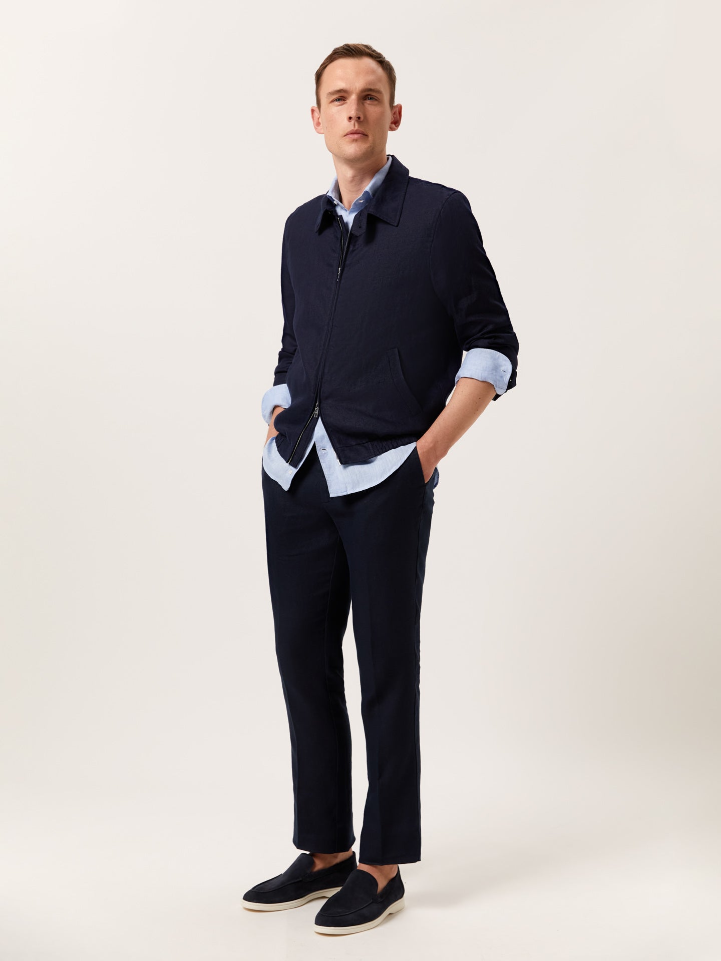 Introducing the Slim-Fit herringbone Shirt in a premium linen quality—crafted from 100% high-quality linen, this shirt offers a soft, breathable feel, perfect for both comfort and style.This shirt combines the natural comfort and refreshing texture of linen, offering a sophisticated yet relaxed fit ideal for elevated casual occasions, enhanced by a garment wash. The slim fit provides a tailored silhouette that flatters the figure, while the newport collar and front button-up fastening give it a contemporary and refined look. Long sleeves with single cuffs and two buttons enhance the shirt’s sleek design, while the chest logo embroidery in matching fabric adds a distinctive touch. An essential addition to any wardrobe, this shirt seamlessly blends style with comfort, exuding an effortless yet premium appeal.