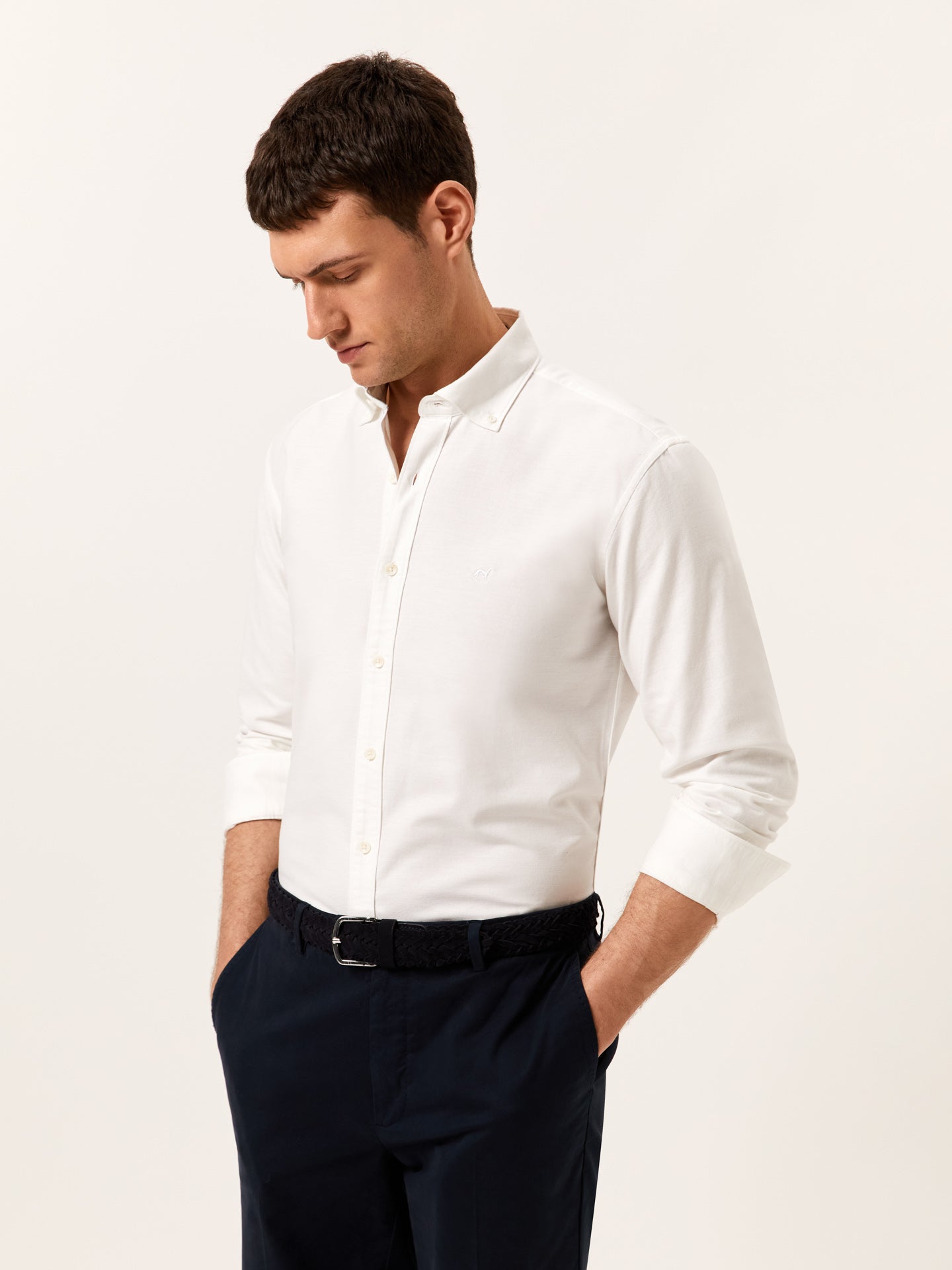 A refined piece that offers lasting elegance and easy versatility. Made from a blend of cotton and elastane, this shirt offers comfort, flexibility, and a polished look. This slim Fit design features a button-down collar, front button-up fastening, and long sleeves with single cuffs and two buttons. Finished with chest logo embroidery. Ideal for the office or any occasion where looking sharp matters. Once you try it, you won’t want to wear anything else.
