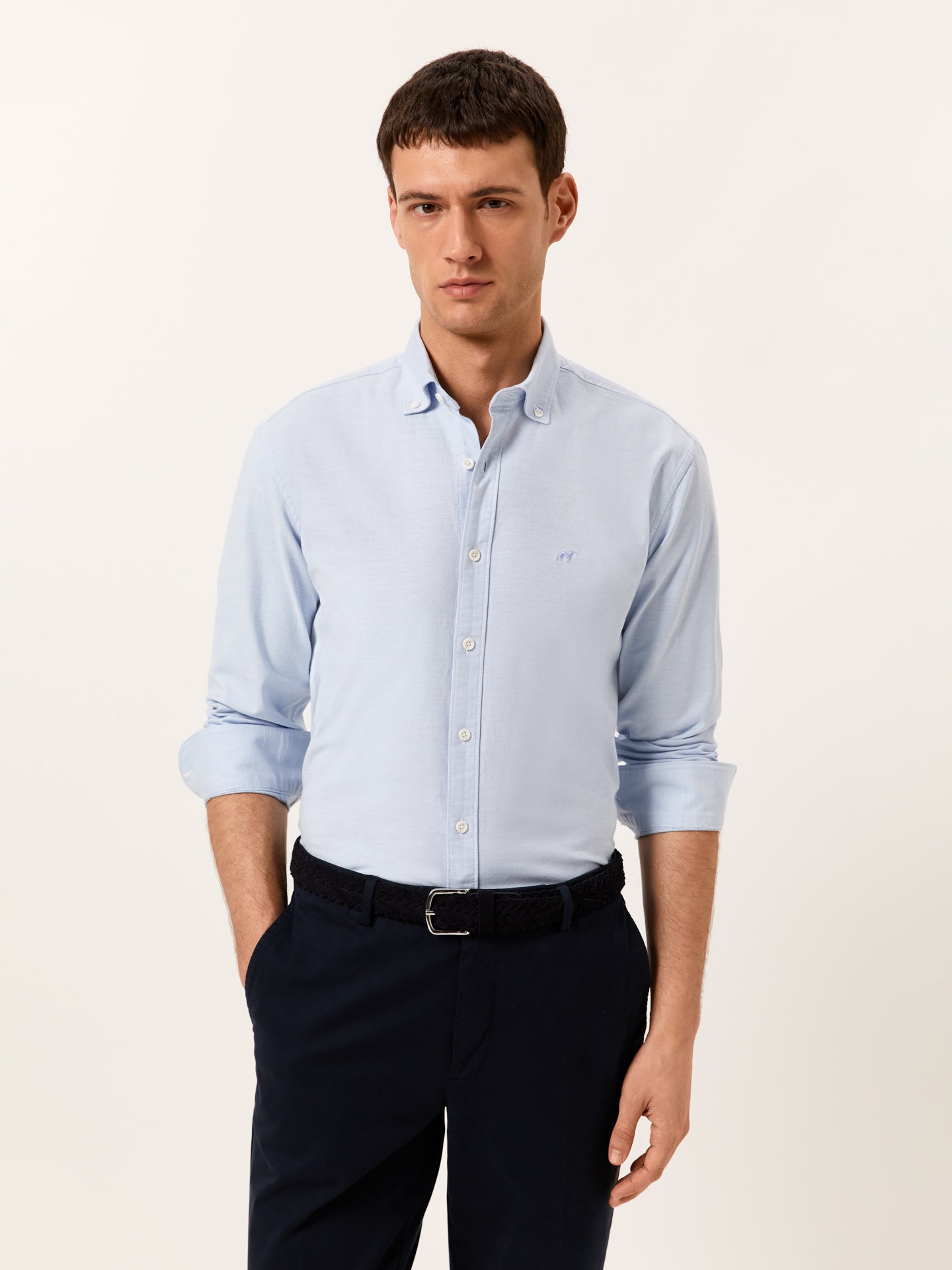 A refined piece that offers lasting elegance and easy versatility. Made from a blend of cotton and elastane, this shirt offers comfort, flexibility, and a polished look. This slim Fit design features a button-down collar, front button-up fastening, and long sleeves with single cuffs and two buttons. Finished with chest logo embroidery. Ideal for the office or any occasion where looking sharp matters. Once you try it, you won’t want to wear anything else.