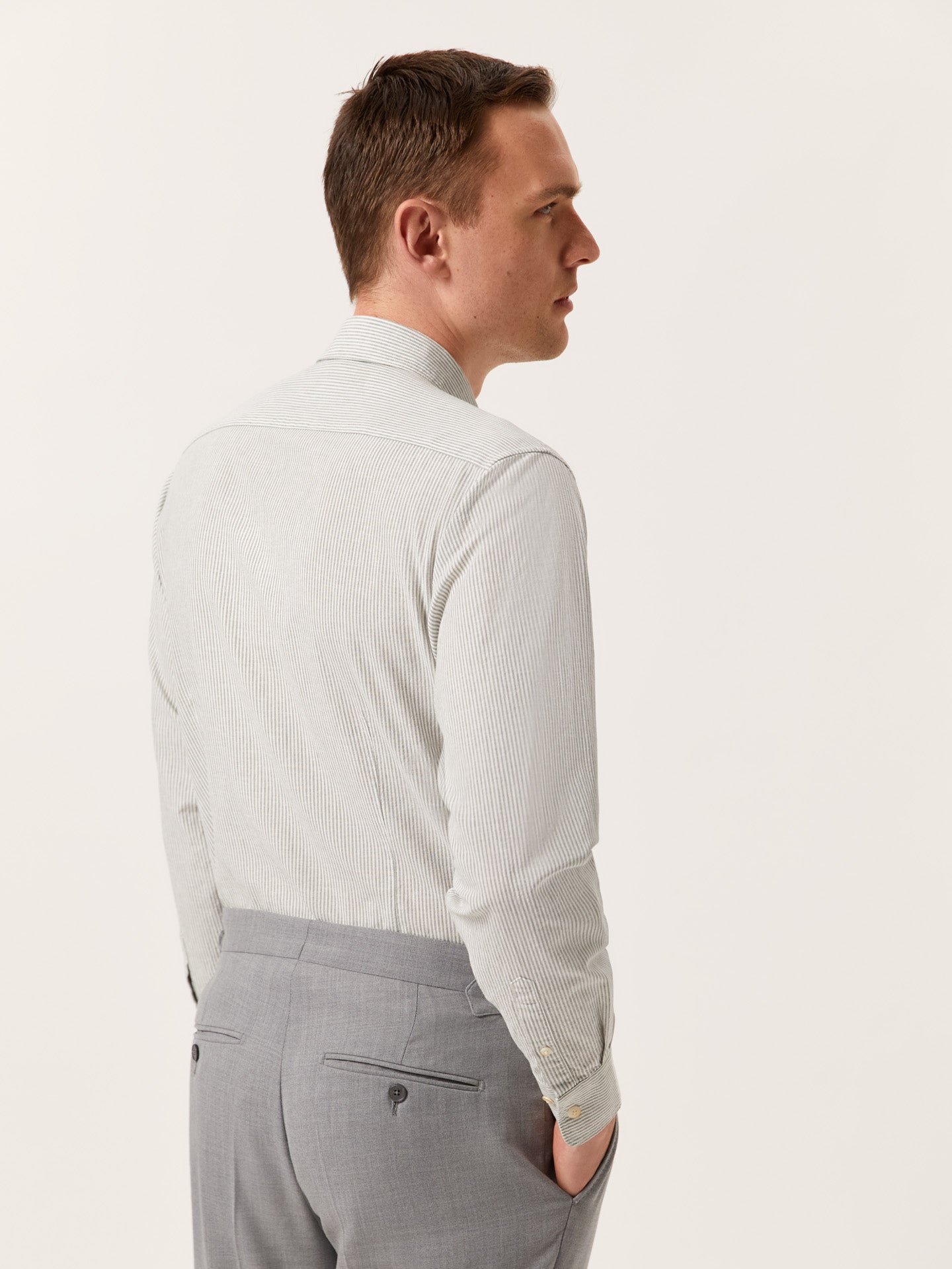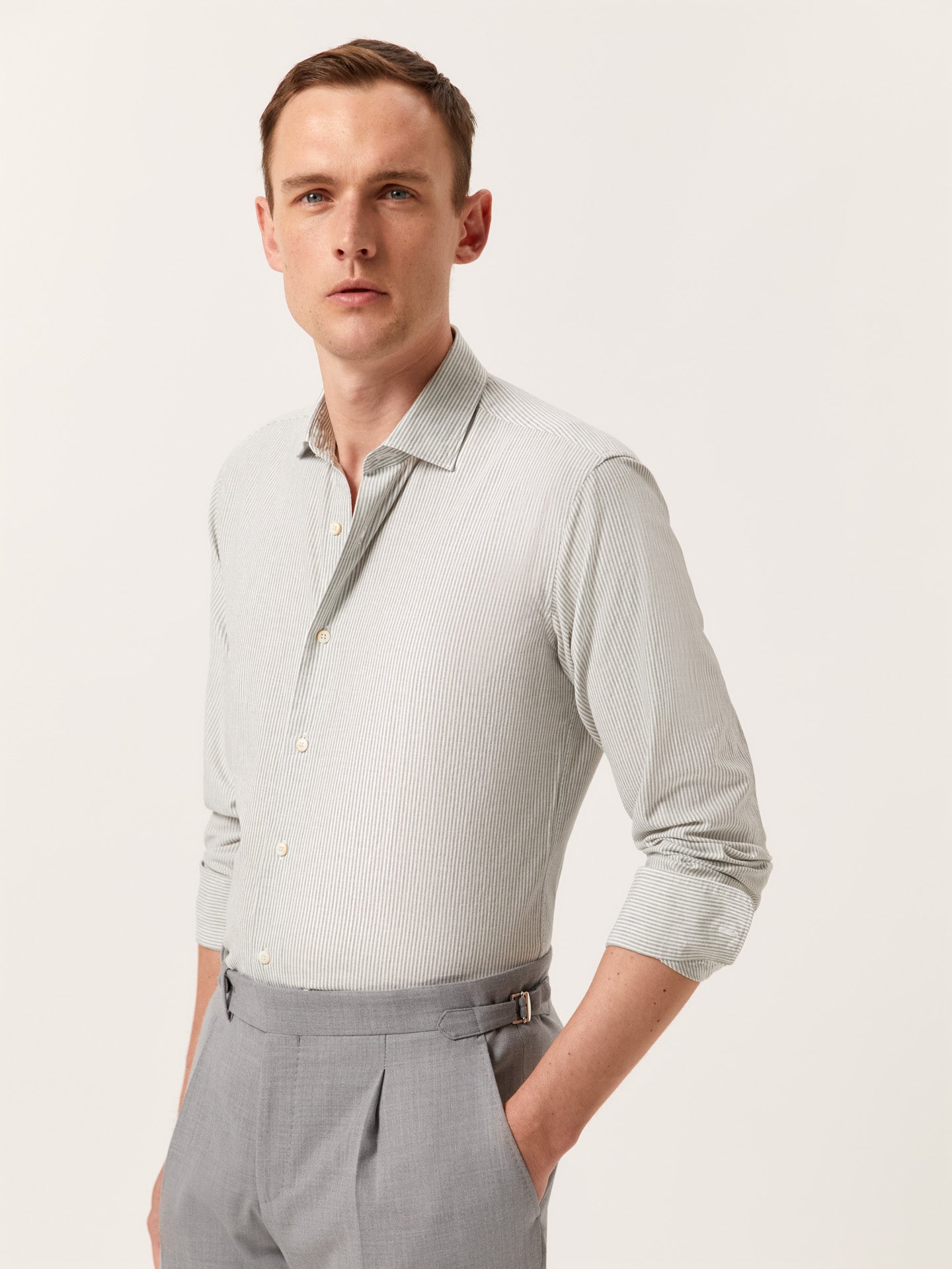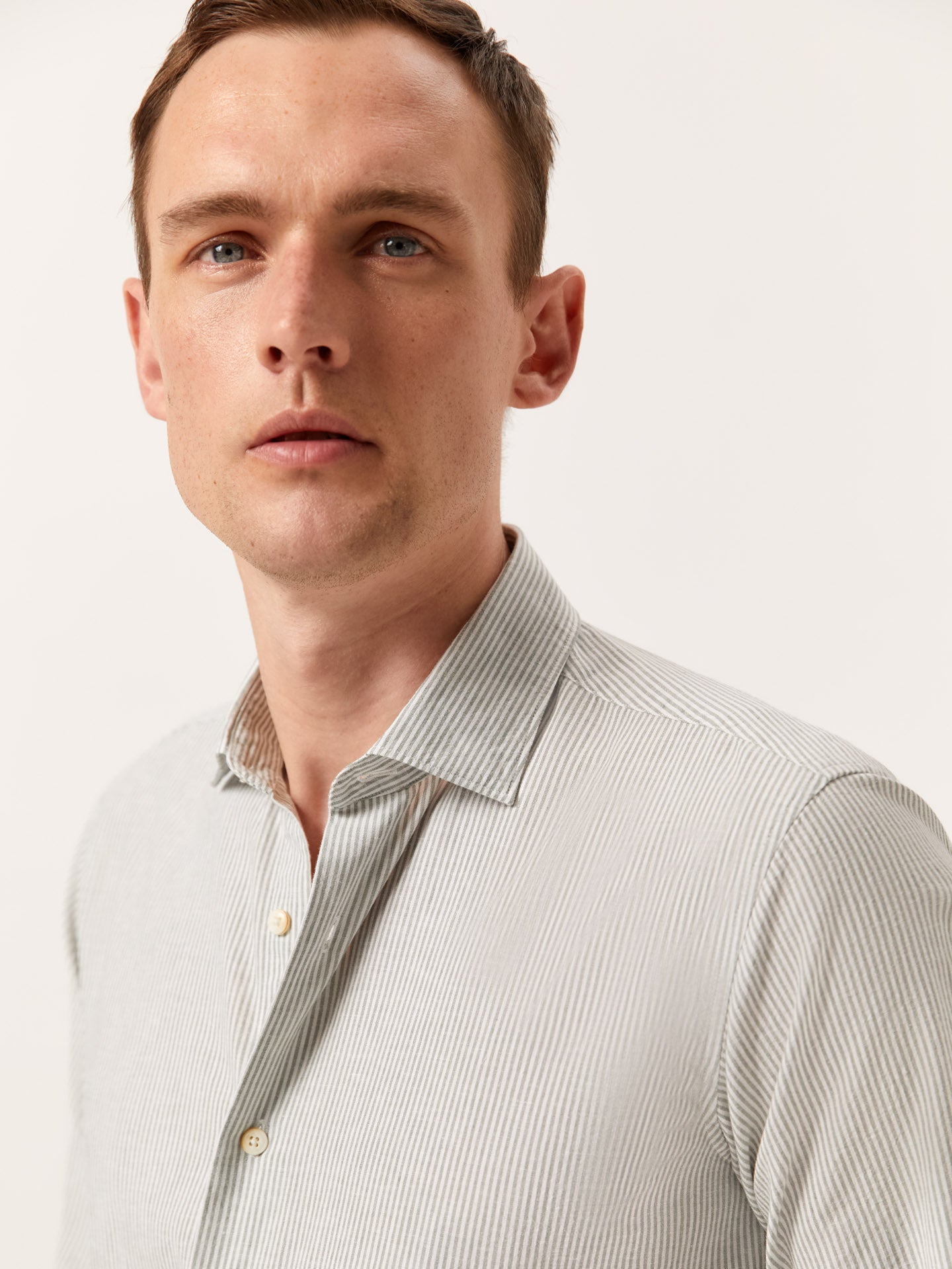 Slim Fit Striped Cotton Linen Shirt with Open Collar