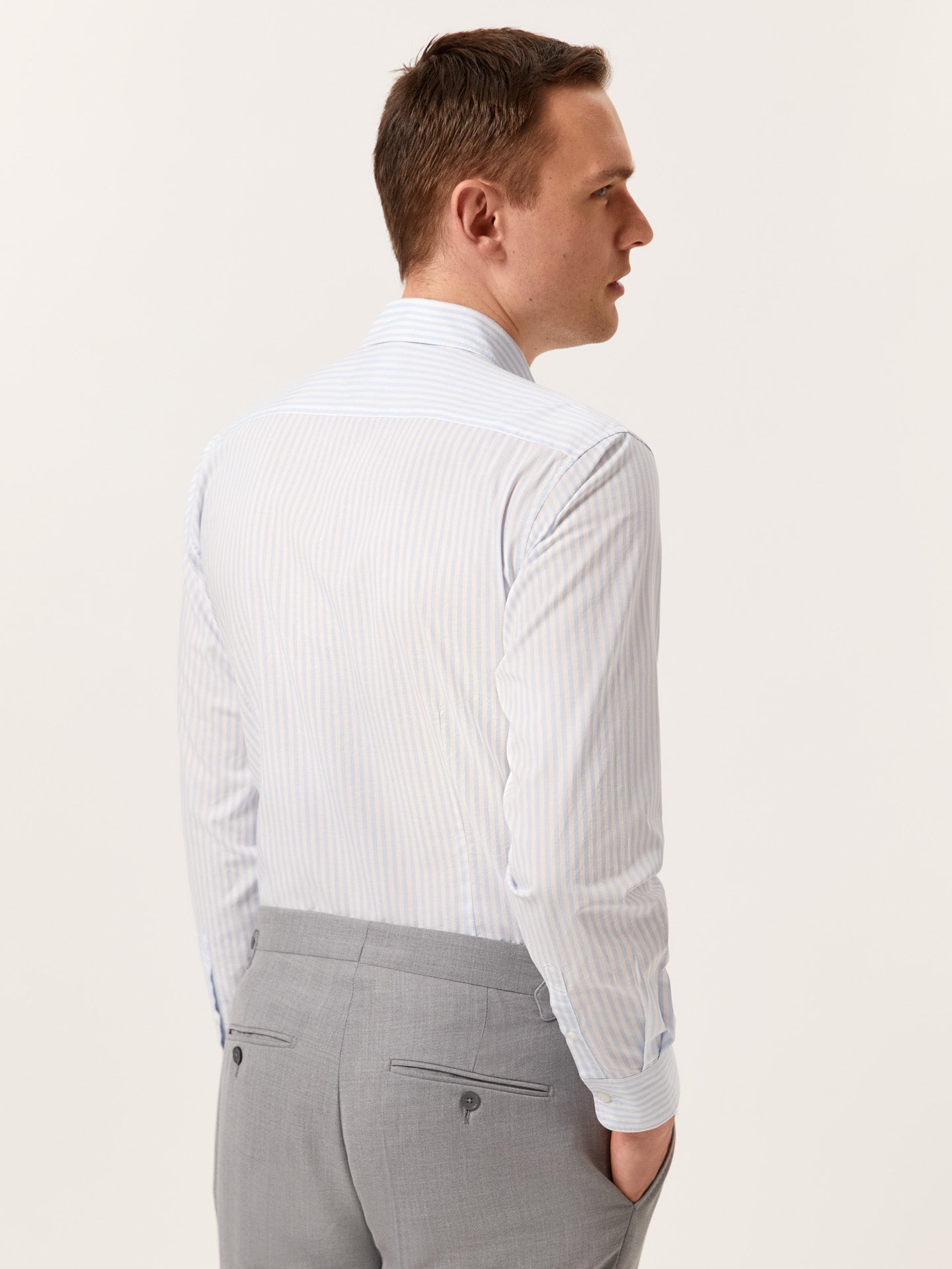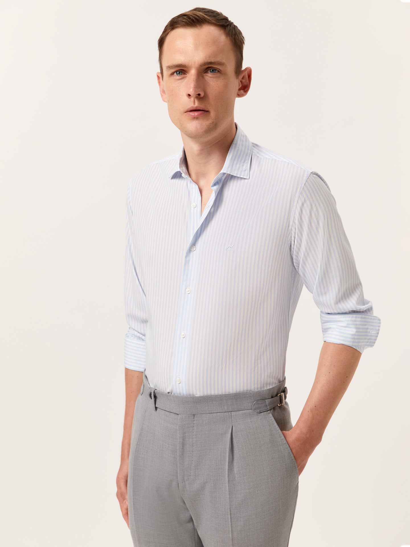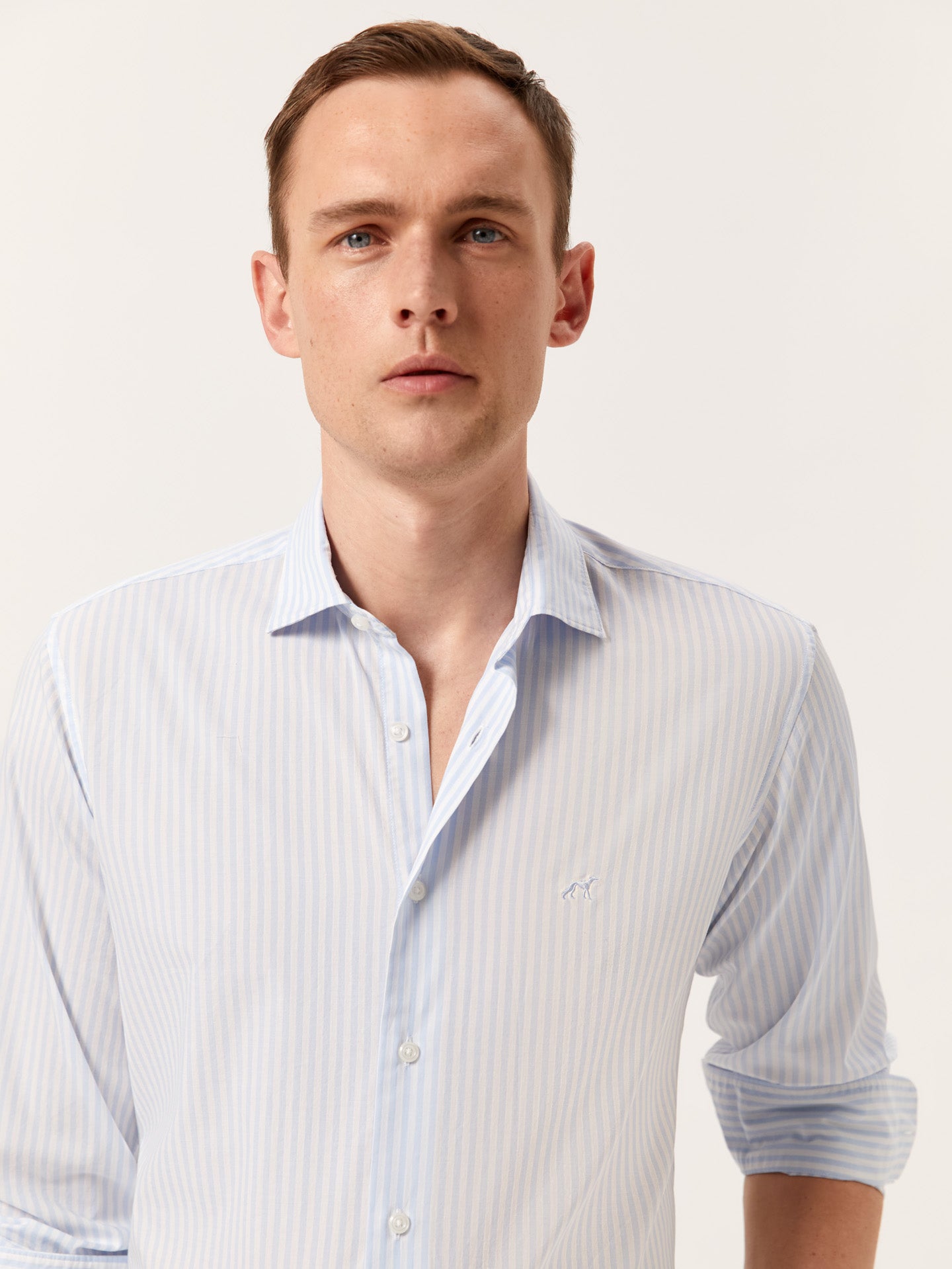 Introducing the striped Slim-Fit Shirt in a premium cotton poplin—crafted from 100% high-quality BCI cotton, this shirt offers a soft, breathable feel, perfect for both comfort and style. The slim fit provides a tailored silhouette that flatters the figure, while the open collar and front button-up fastening give it a contemporary and refined look. Long sleeves with single cuffs and two buttons enhance the shirt’s sleek design, while the chest logo embroidery in matching fabric adds a distinctive touch. An essential addition to any wardrobe, this shirt seamlessly blends style with comfort, exuding an effortless yet premium appeal.