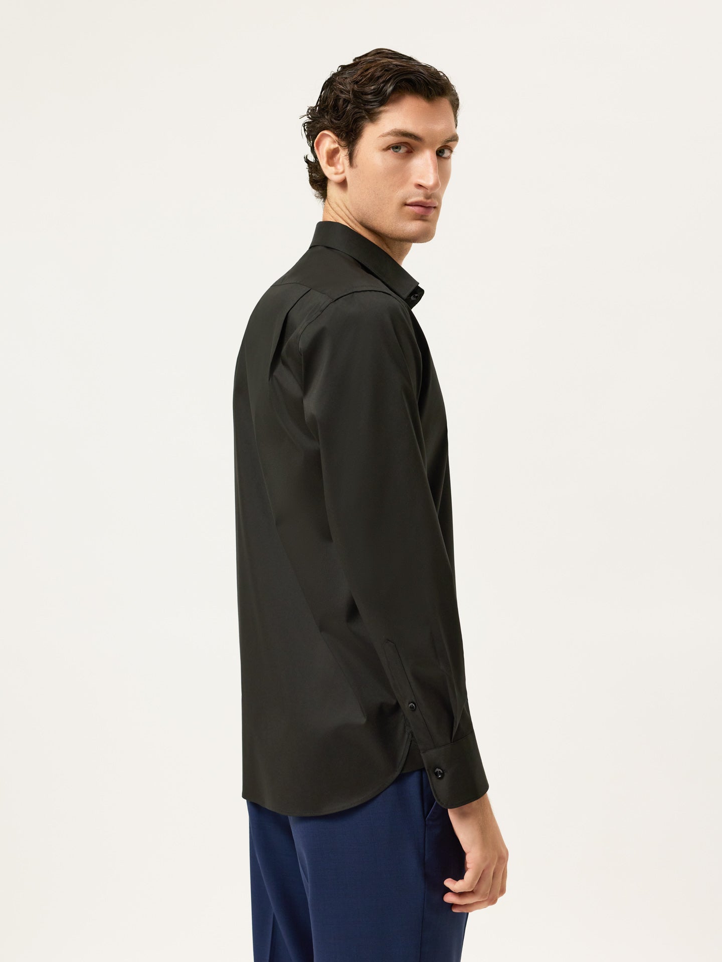 Regular Fit Cotton Stretch Travel Shirt With Oxford Collar and Chest Pocket.