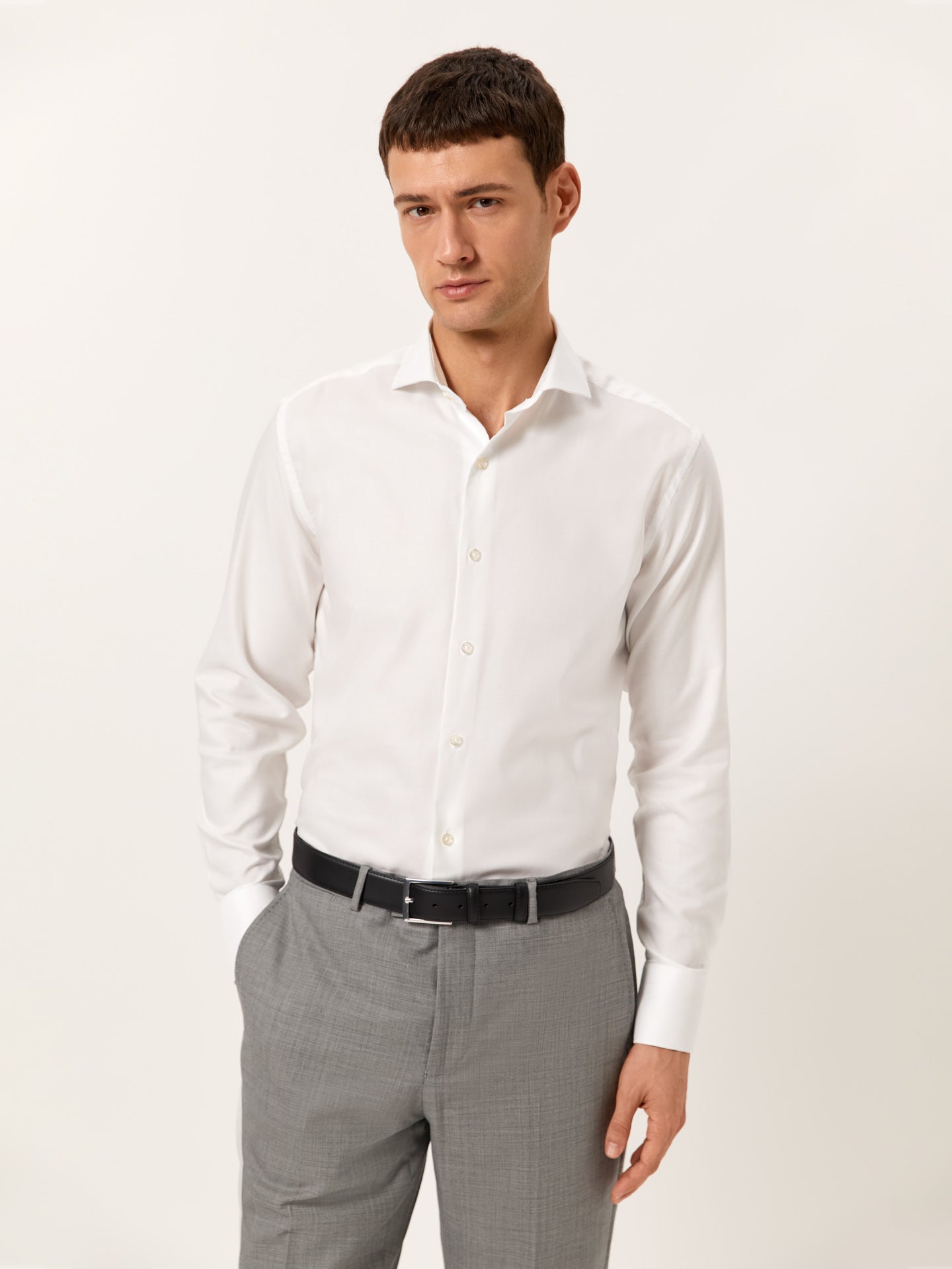 A refined piece that offers lasting elegance and easy versatility. Made from 100% cotton Oxford fabric, this formal shirt combines comfort with a refined look. Designed in a regular fit, it features a Dublin collar, front button-up fastening, long sleeves with single cuffs and two buttons, and side gussets in the same fabric. This shirt is perfect for office wear and any occasion where a sharp look matters. Shirts for every occasion — once you try it, you won’t want to wear anything else.