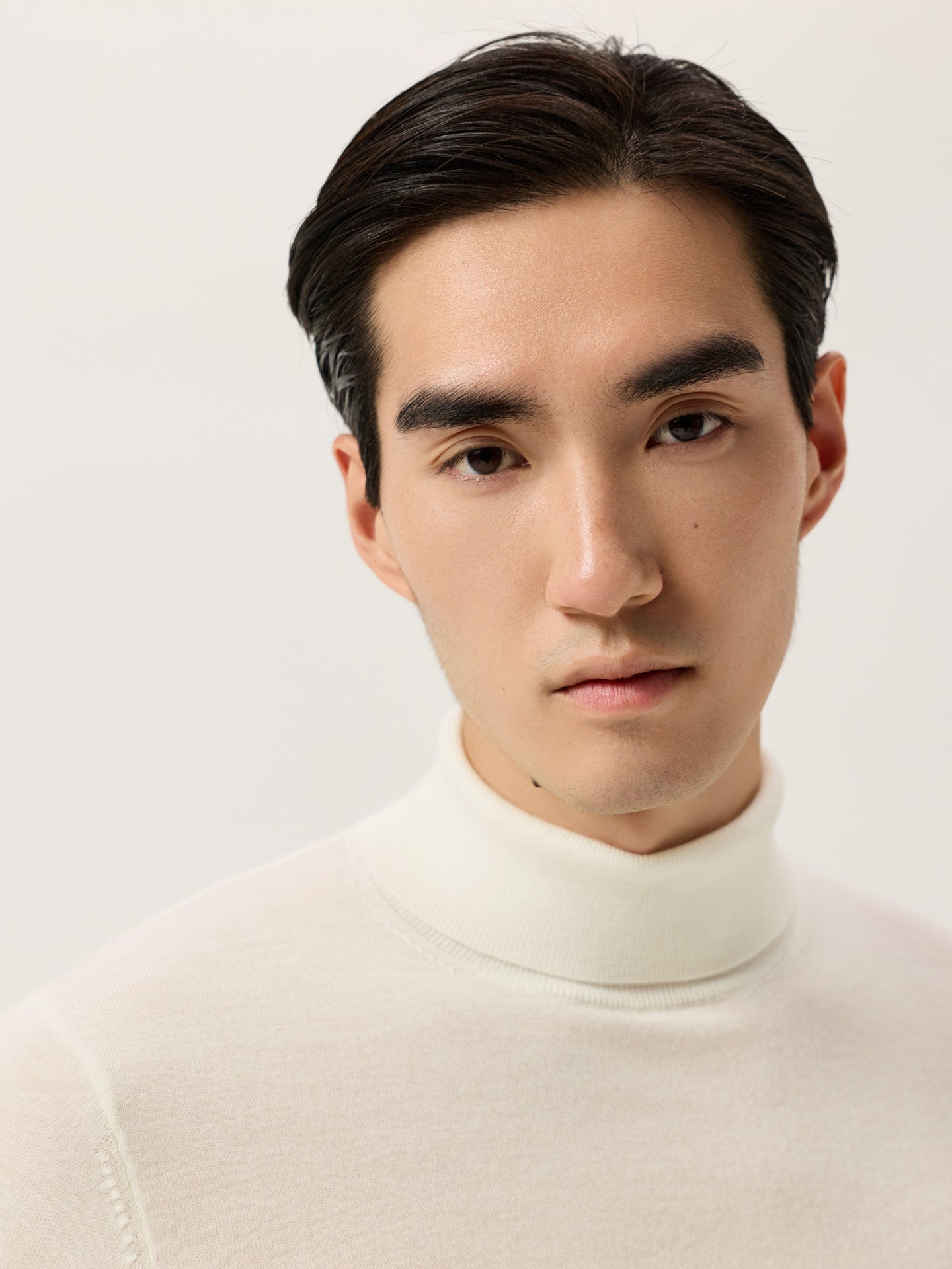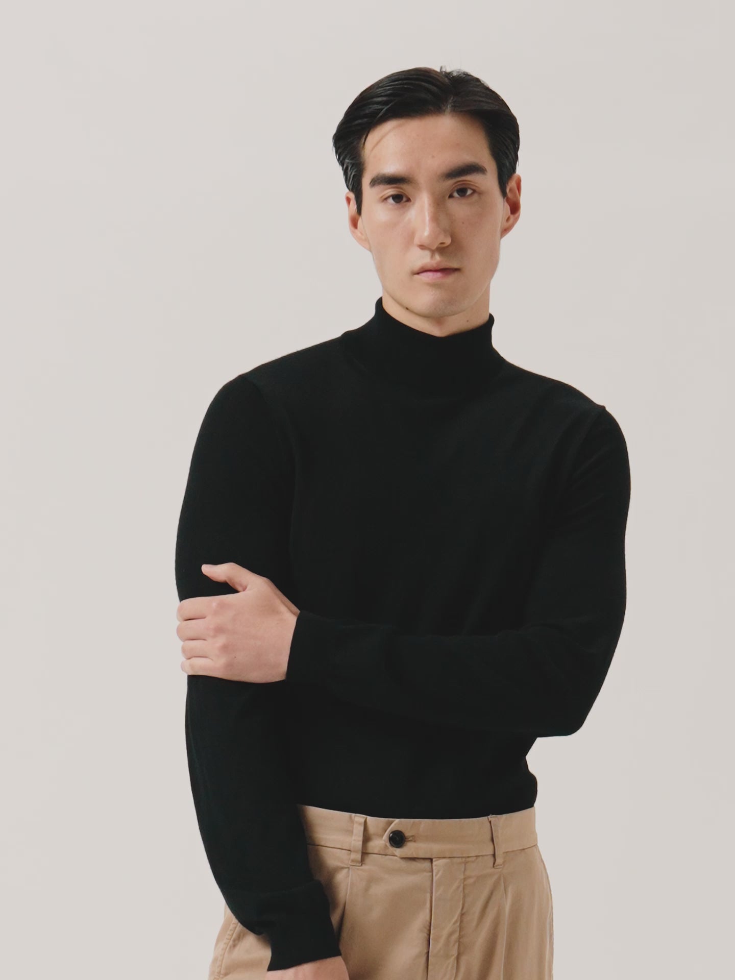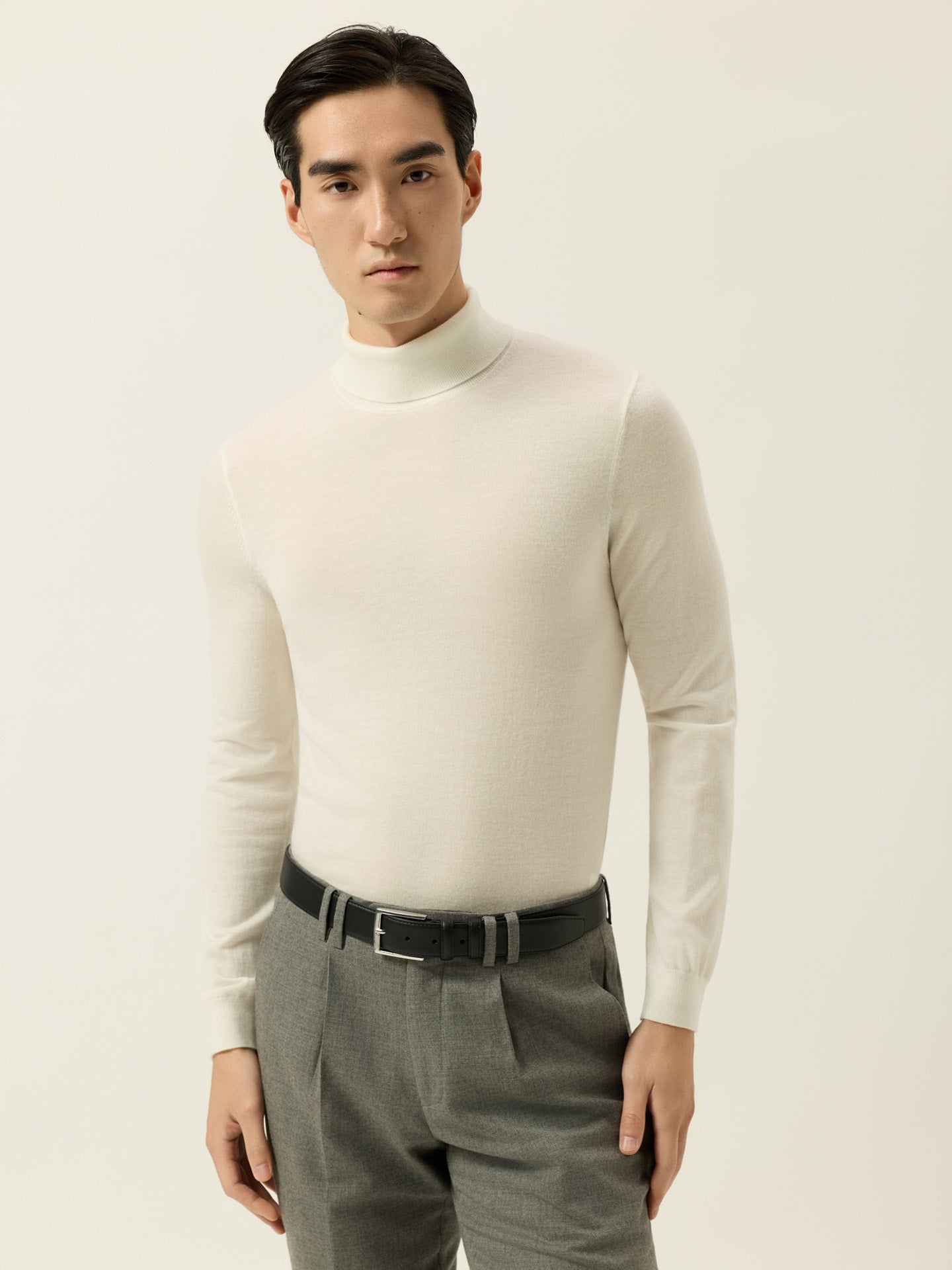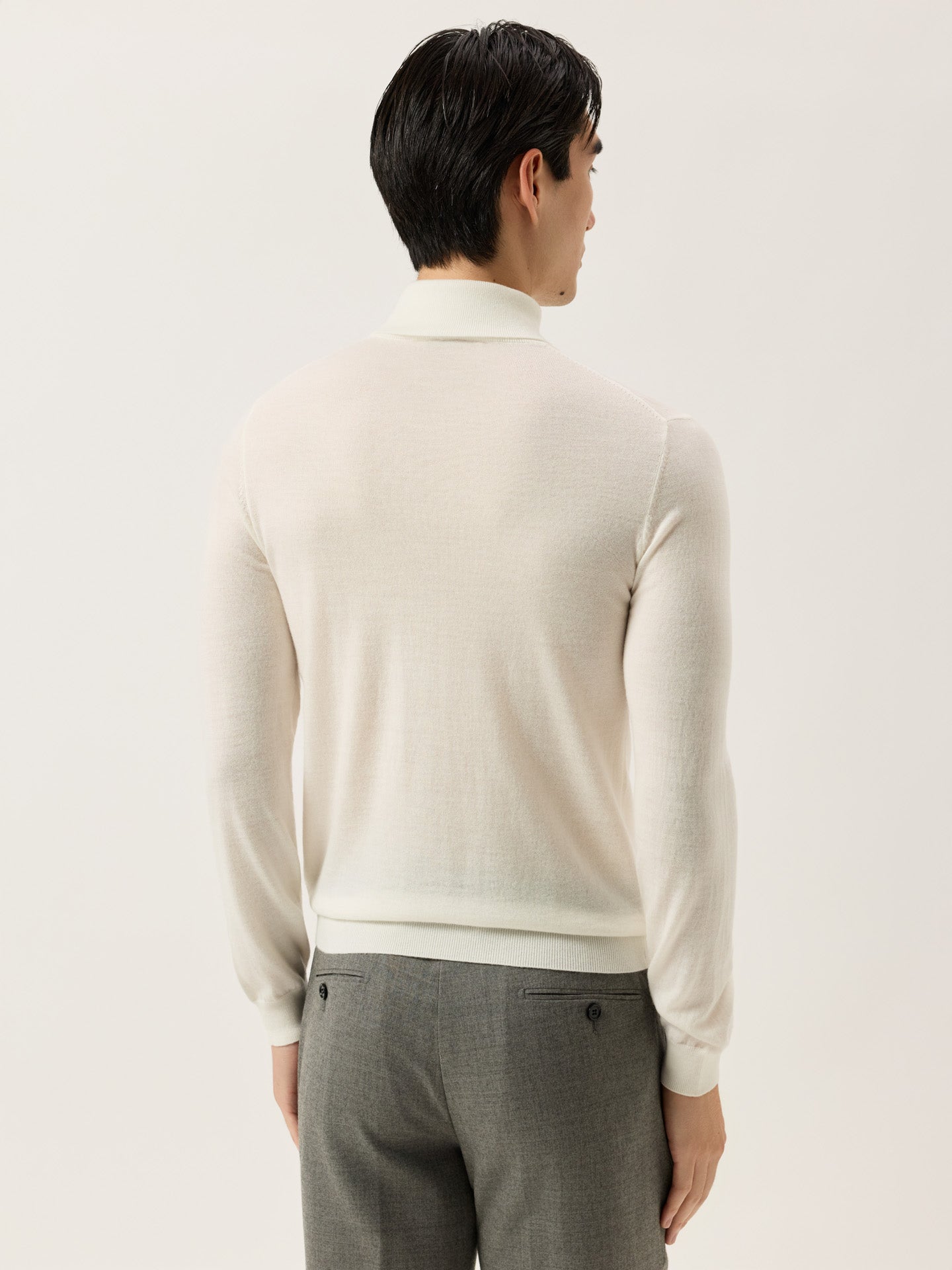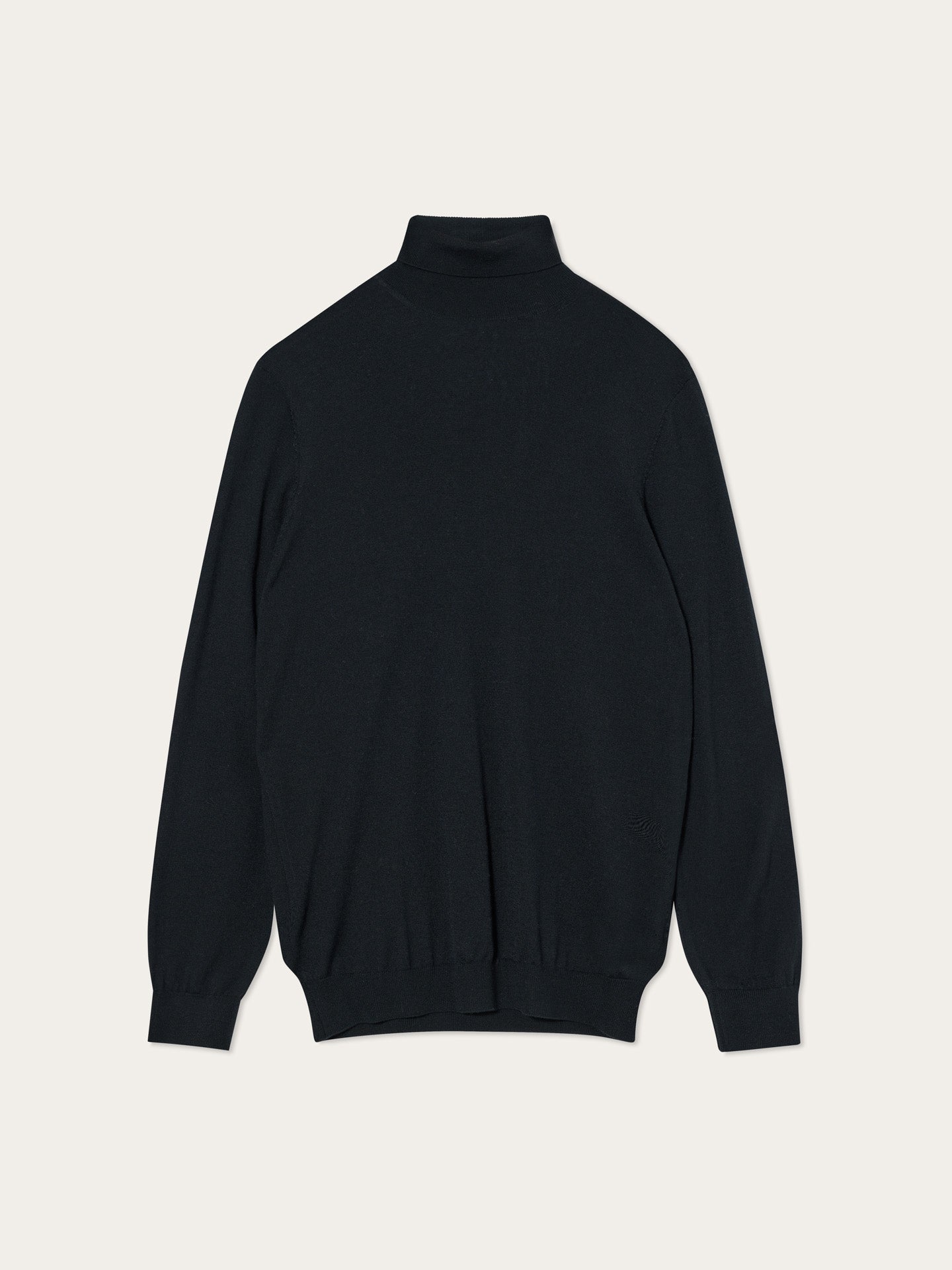 Long-sleeve turtleneck sweater knitted from extra fine Merino Wool. Designed with ribbed finishes at the collar, cuffs, and hem. Fully fashioned at the shoulder seams and armholes for a clean, structured fit.