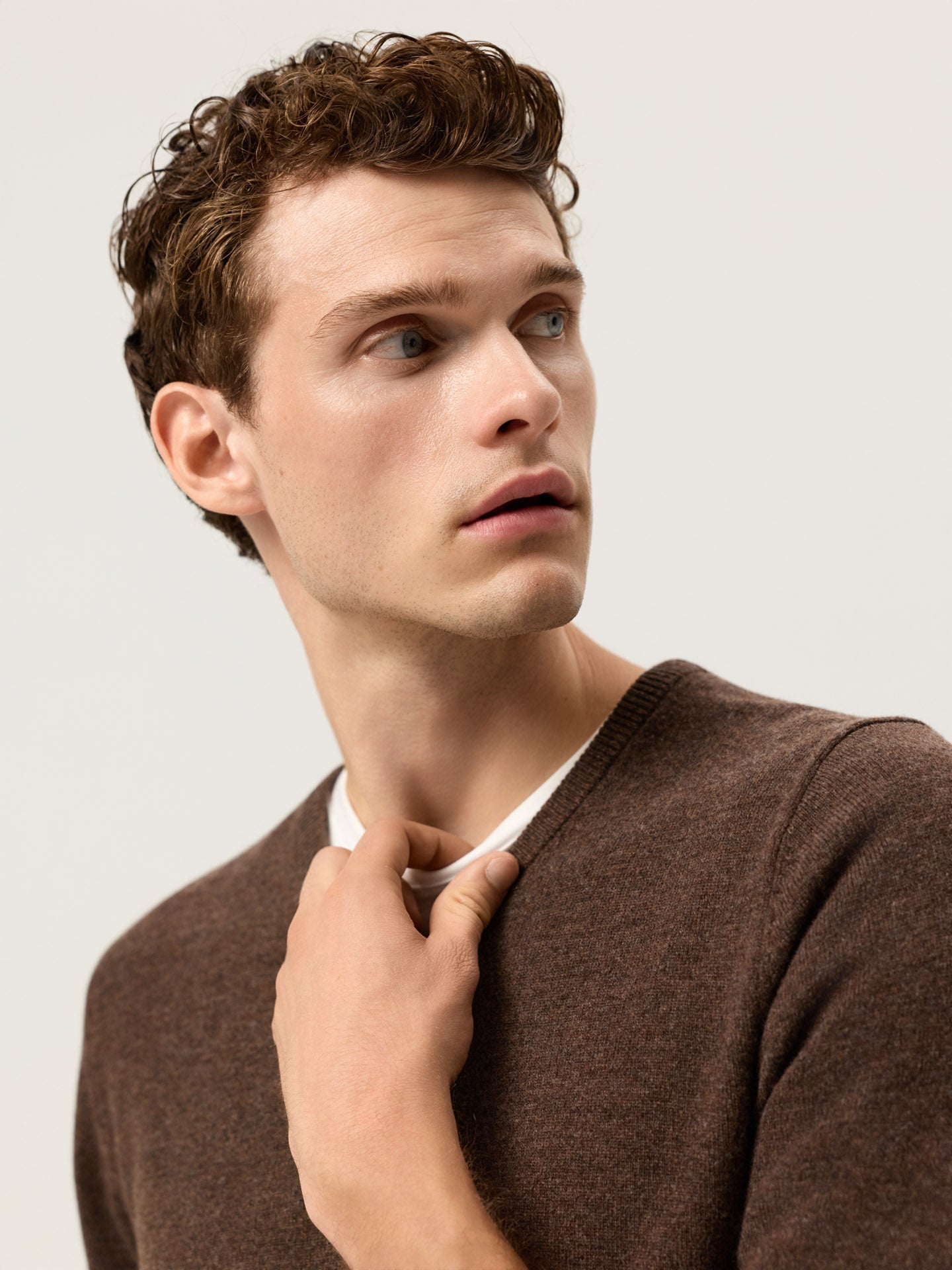 Long Sleeve V-Neck Sweater In Fine Lambswool