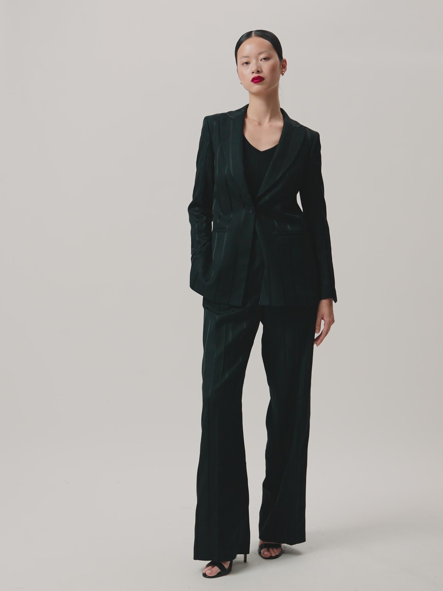 Creased high waist trousers expertly tailored from Striped Viscose blend fabric with loose fit. Zip fly and hook and eye waistband fastening, side pockets, welt back pockets, and invisible hem.