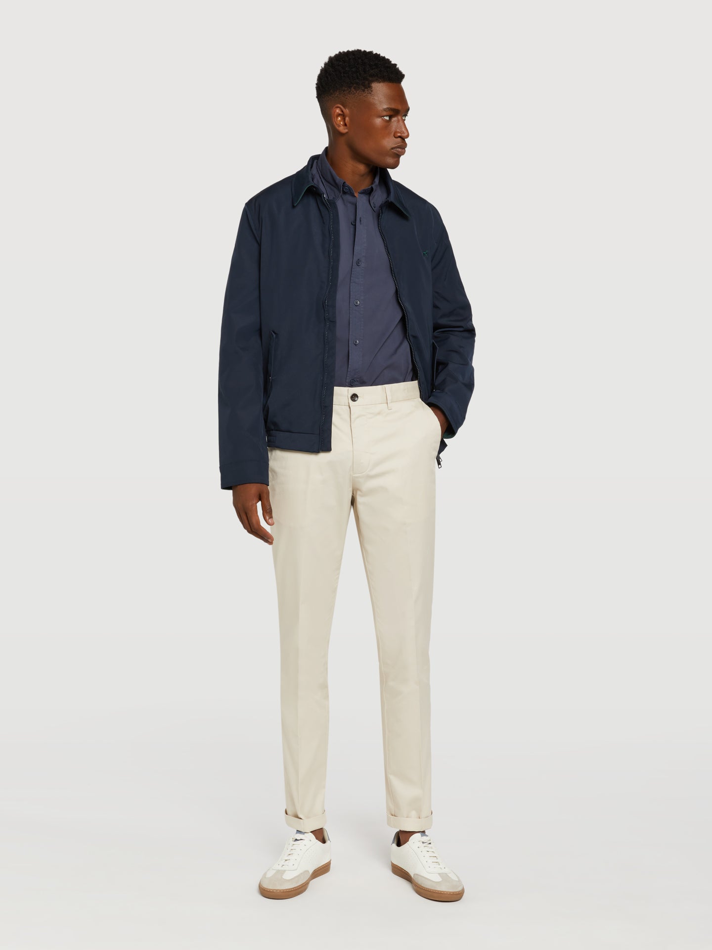 GEN Z capsule harrington jacket, plain fabric. Contrating logo Sacoor embroidered on chest. Pointy collar with underneath tab to close collar on front. Contrasting colour under collar and cuffs. Side pockets and bi-swing function that allows better shoulder and arm movement. Closes with double zipper. Fully lined interior with Tartan fabric and with two pockets. Fighting for inclusivity and gender-neutrality, our Generation Z Capsule Collection is a youthful, genderless exploration giving rise to individuality, diversity and positivity. It is a relevant edit of luxurious streetwear styles easily worn by men and women.