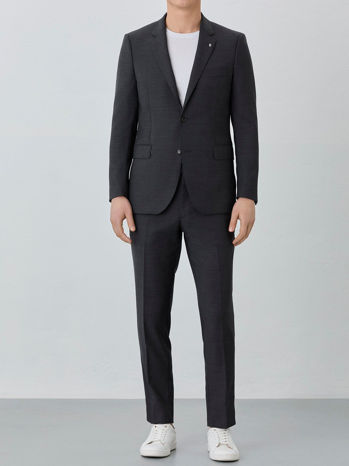 Birdeye suit expertly tailored from 100% wool made in Portugal. This slim fit two-piece suit creates a relaxed silhouette that is ideal for all profiles. Two-button blazer with notch lapels and welt pockets with flap, four-button cuffed, two back slits, special inside pockets with zip. Trousers with zip fly and button extended waistband fastening, two side pockets with coin pocket, two back welt pockets and belt loops. All suits have regular fitting measures from sizes 56 to 62. This suit is ideal for office wear and for those situations when looking impeccable is essential. Suits for every occasion. Once you’ve tried them, you’ll never want to take them off.