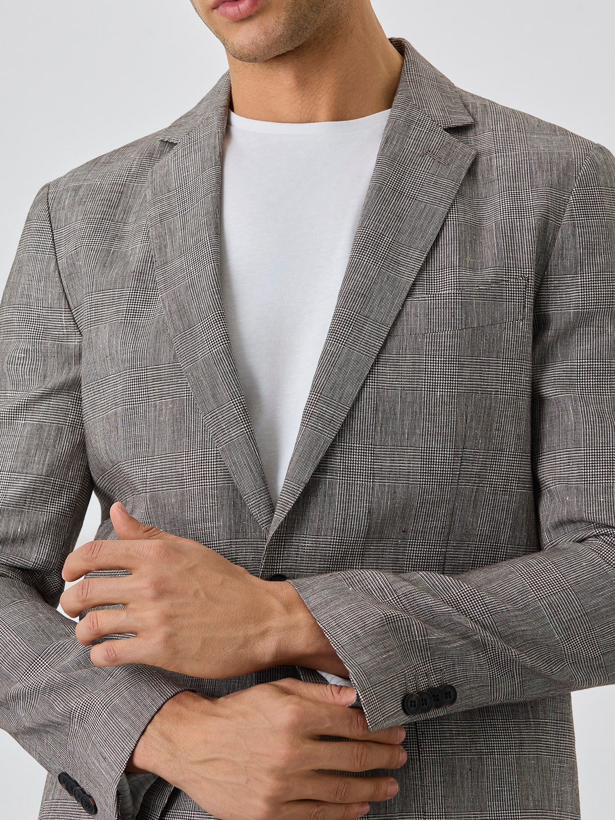Half-Canvas Checks Blazer With Patch Pockets In Linen