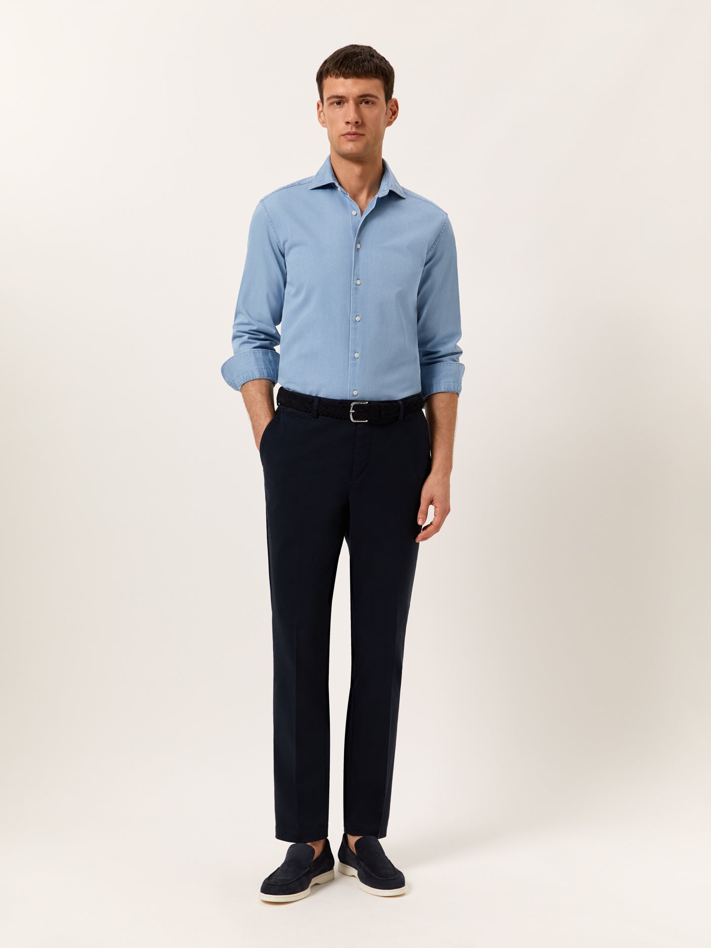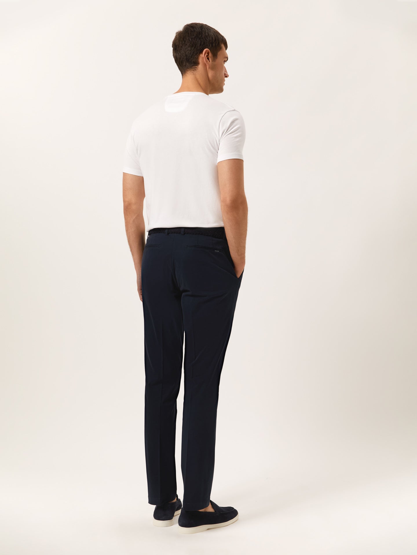 A refined piece that offers lasting elegance and easy versatility. Made from a blend of cotton and elastane, these trousers provide lightness, stretch, and all-day comfort. Designed in a regular fit, they feature a zip fly with branded button fastening, belt loops, two front slash pockets, and two back pockets. A woven brand label details the back pocket. Finished with a regular single-stitch hem. Ideal for the office or any occasion where looking sharp matters. Once you try them on, you won’t want to wear anything else.