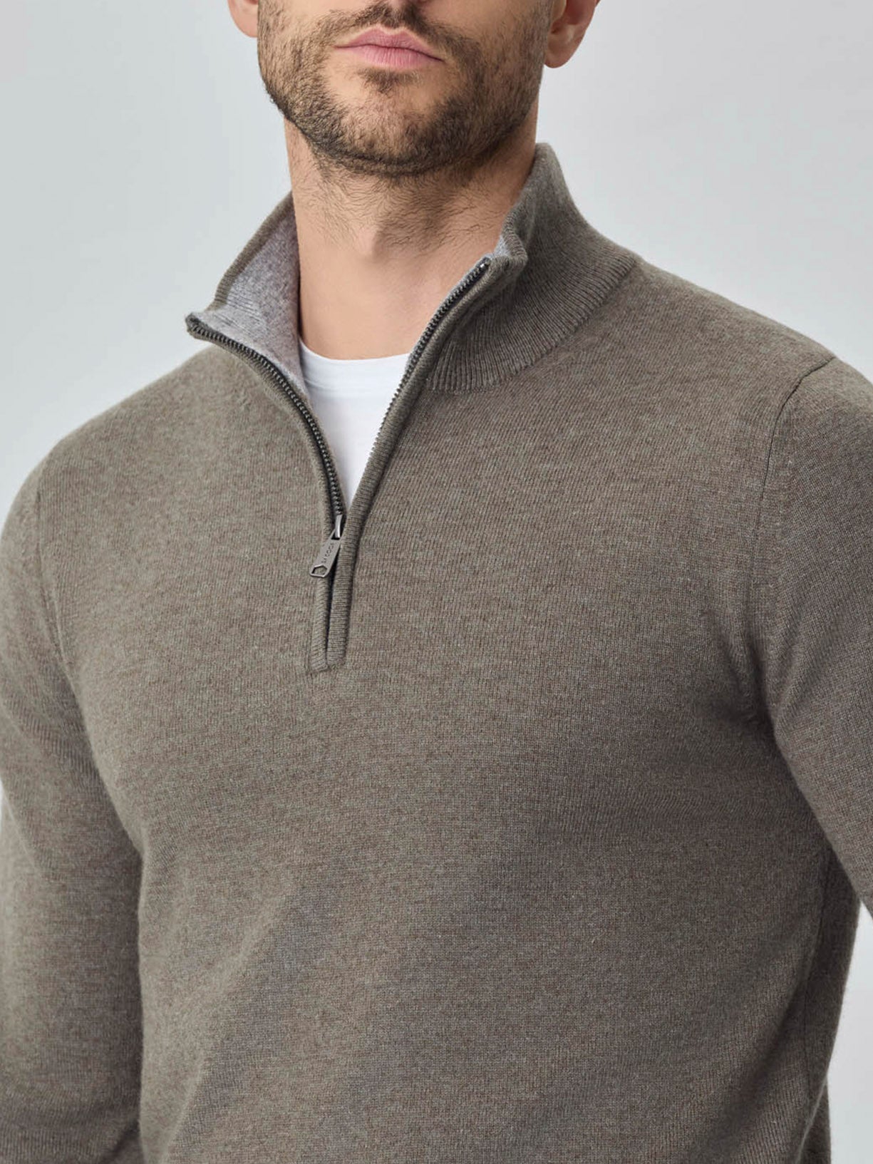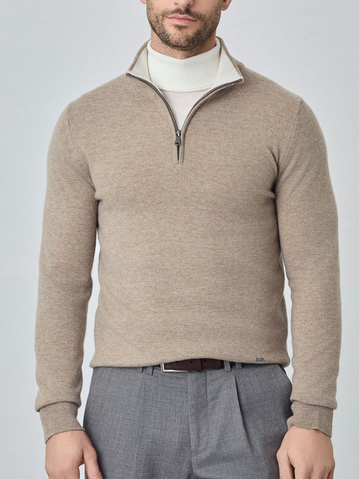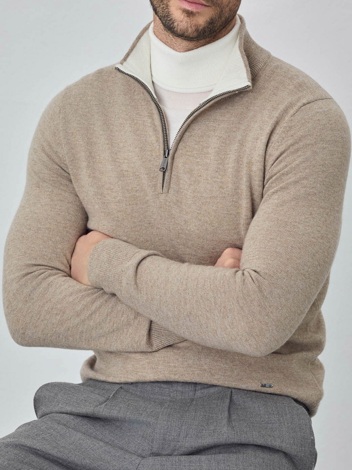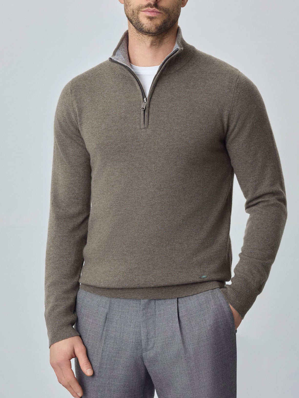 Camisola com fecho parcial de manga comprida lavável na máquina em mistura de lambswool