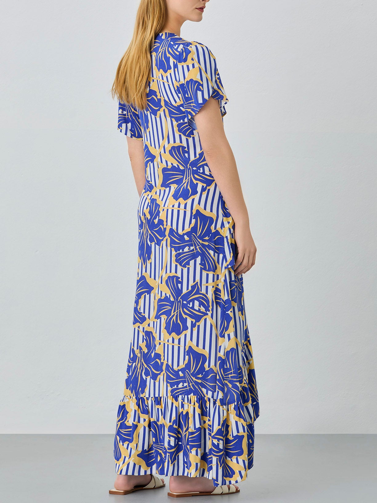Vestido Estampado Floral Em Viscose Com Mistura Lenzing Com Folhos
